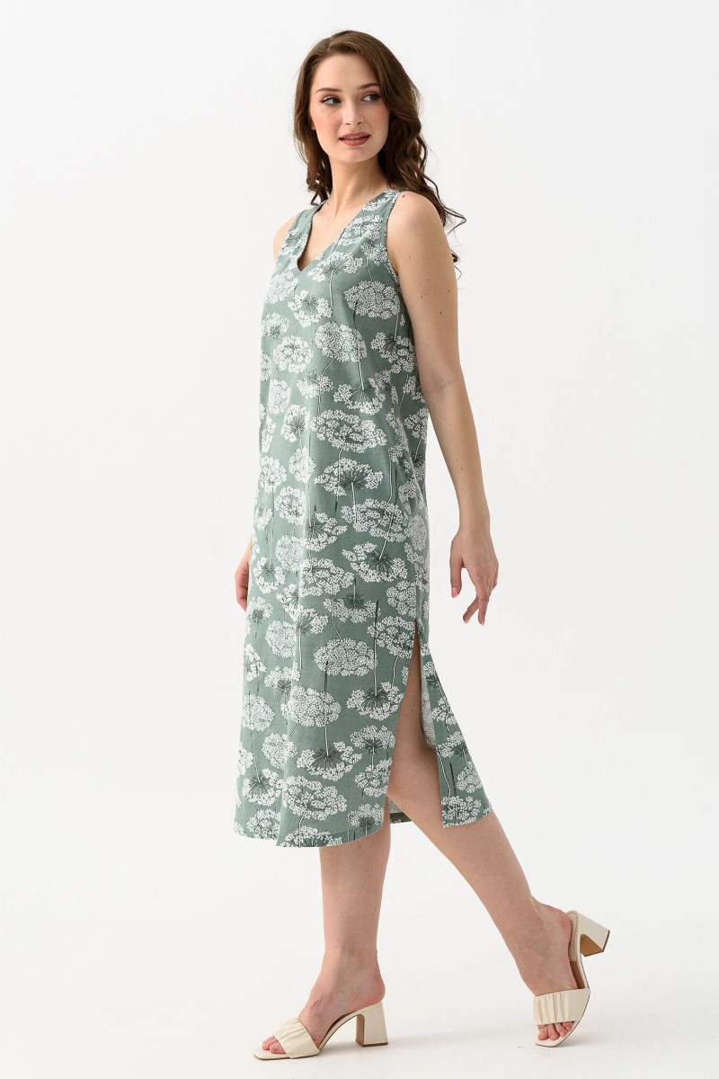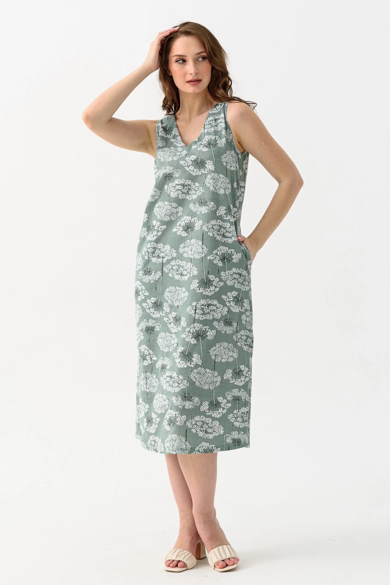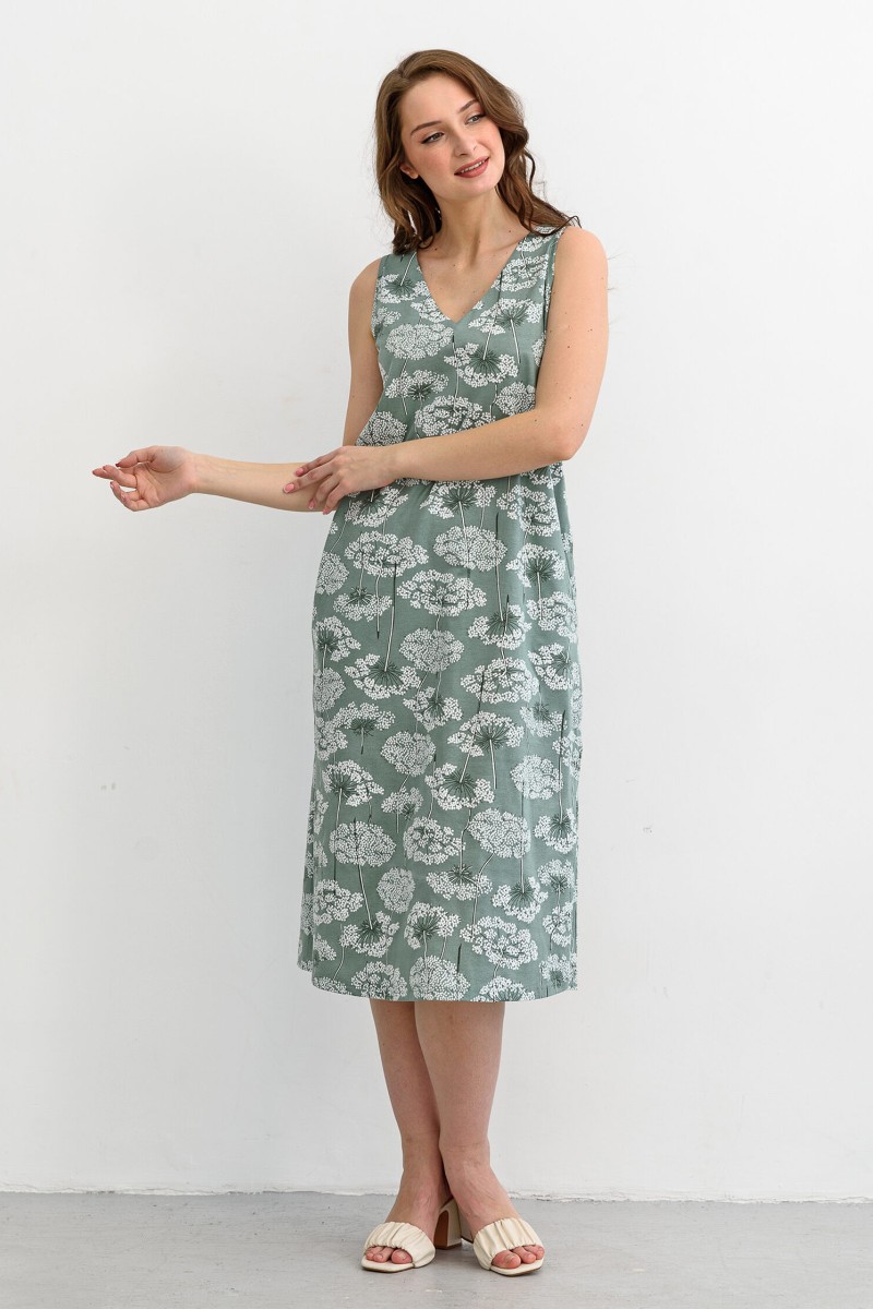 Сарафан женский "Луговые цветы" 2219-К трикотаж (последний размер) зеленый 50,56