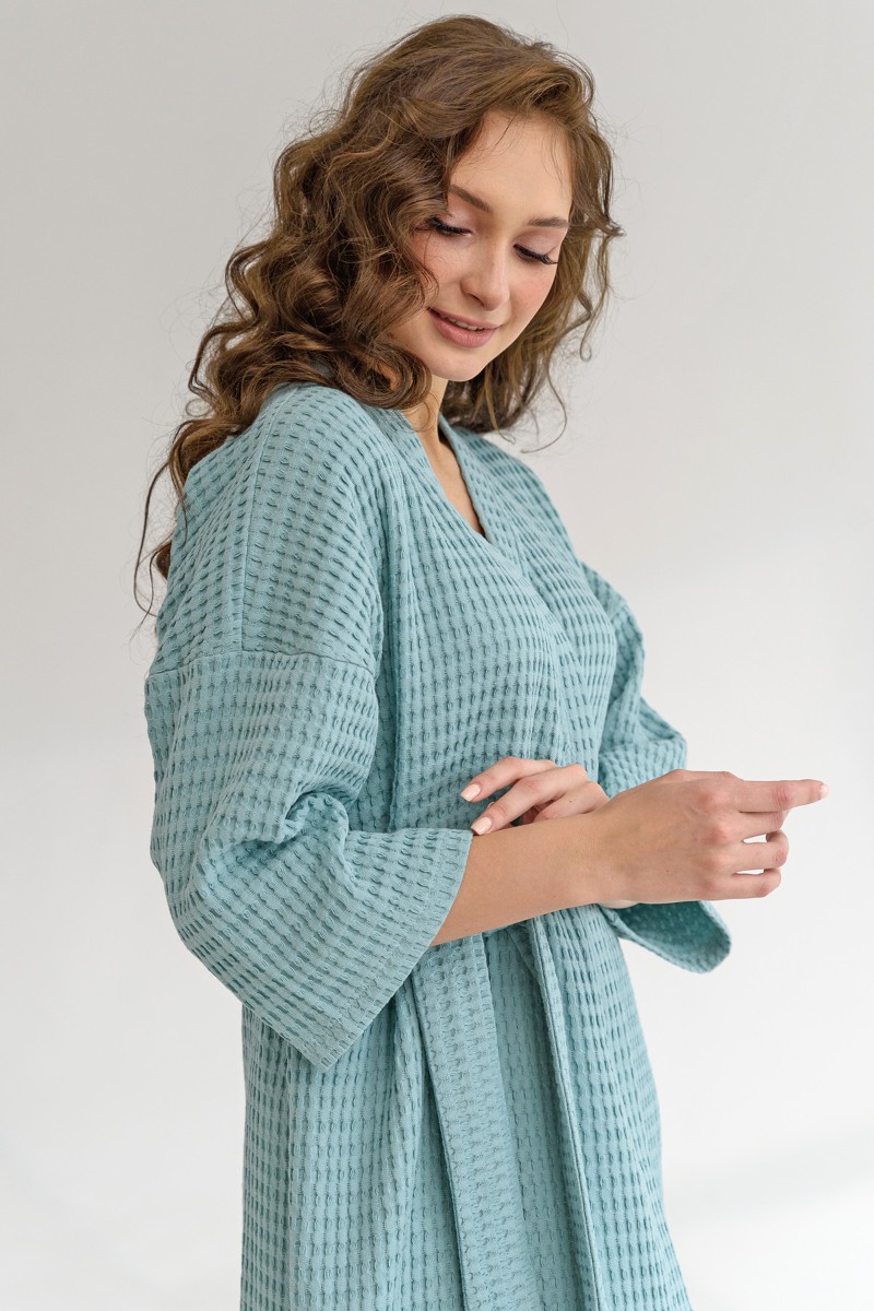 Халат женский "Кимоно" 2159-Ваф вафельное полотно (последний размер) мятный 50,52