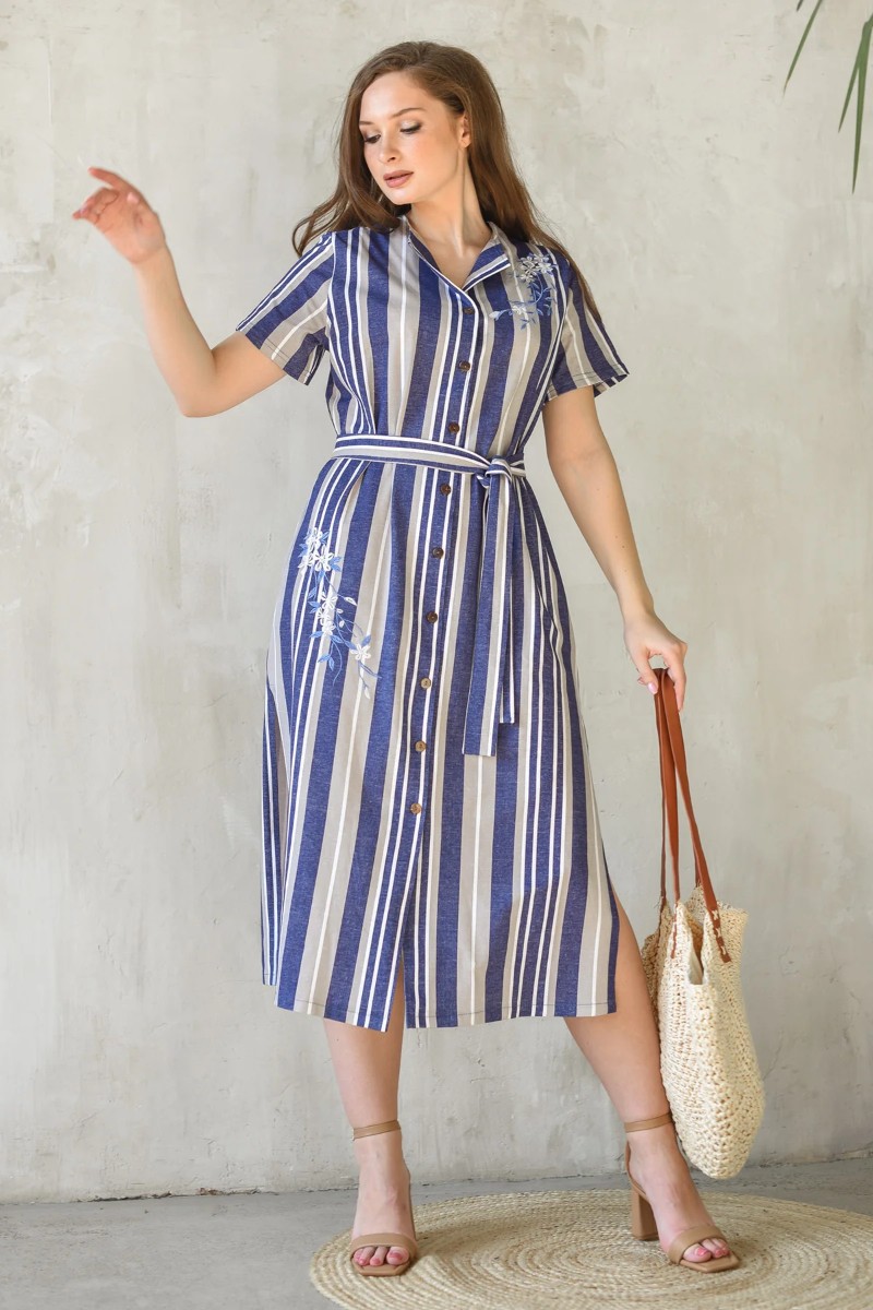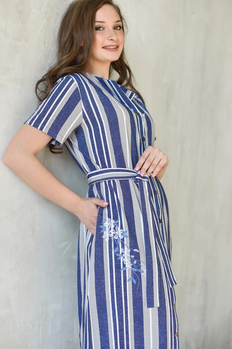 Халат женский 1615-К "Лютики" кулирка (последний размер) синий 50,54