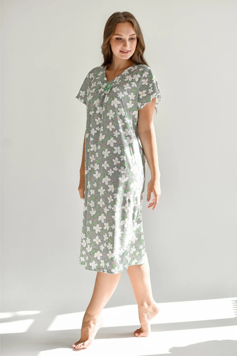 Сорочка женская 1724-К "Полянка" (рукав) кулирка (последний размер) графит 50