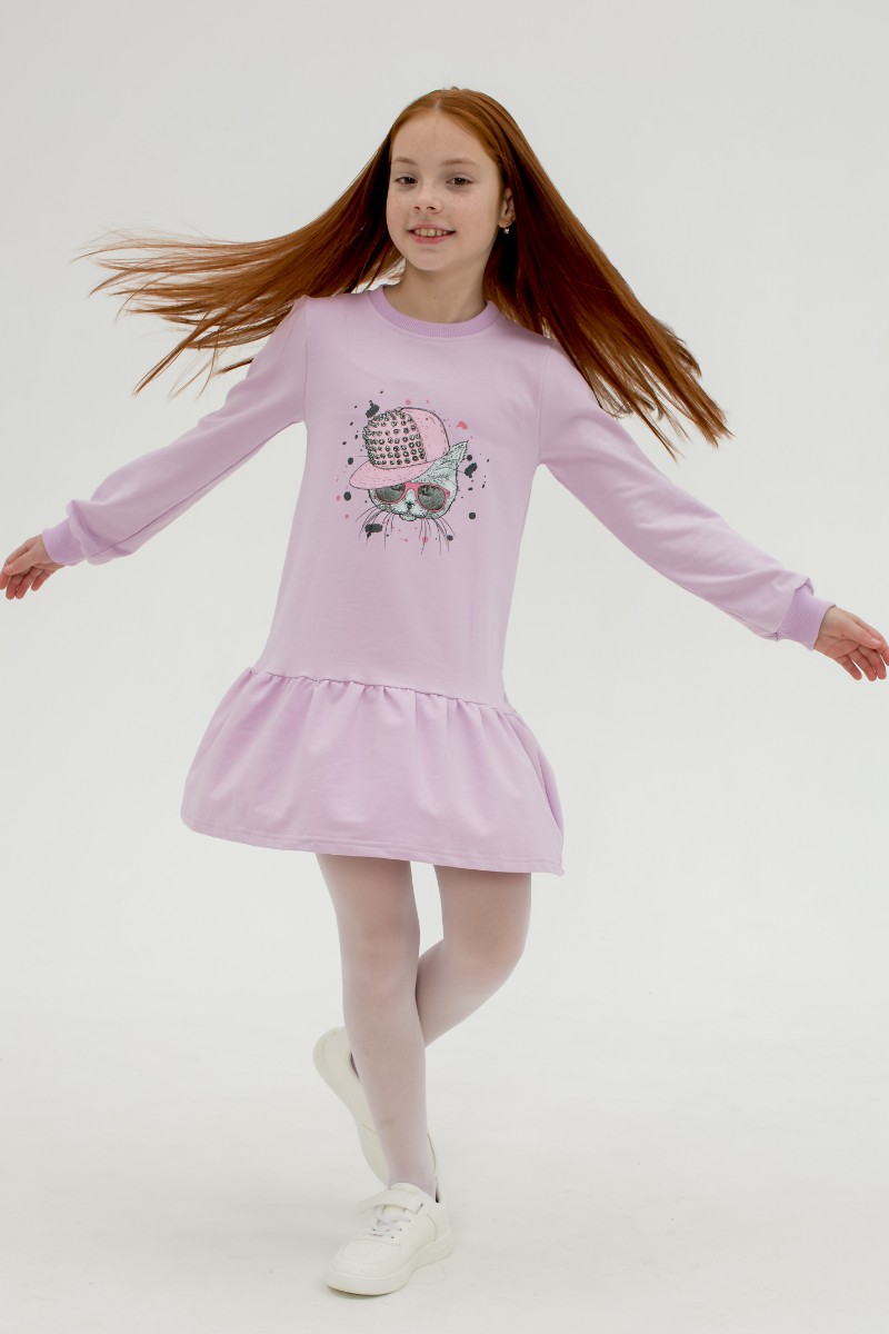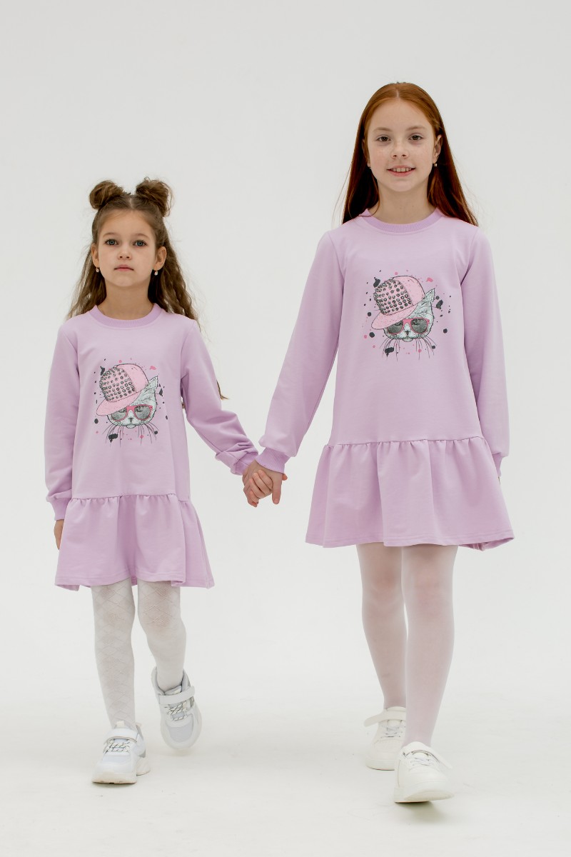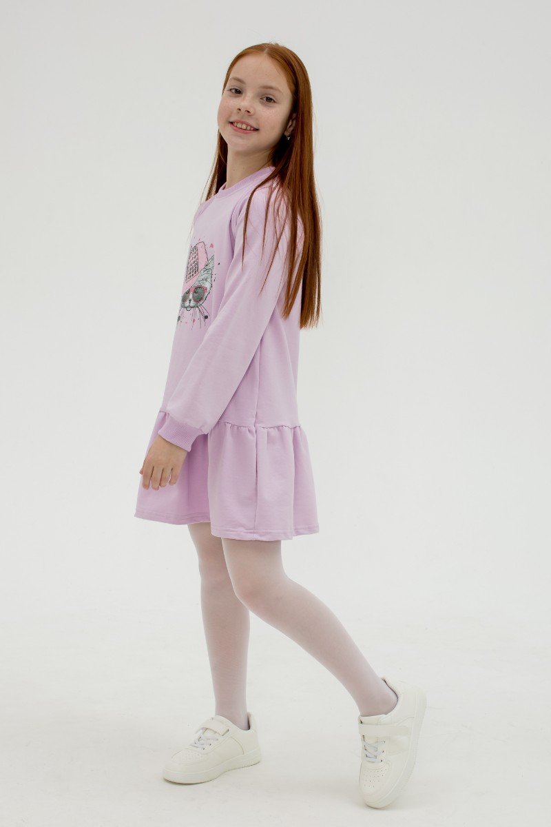 Платье детское "Дерис" 20785 футер 2-х нитка петля (последний размер) сиреневый 110,116