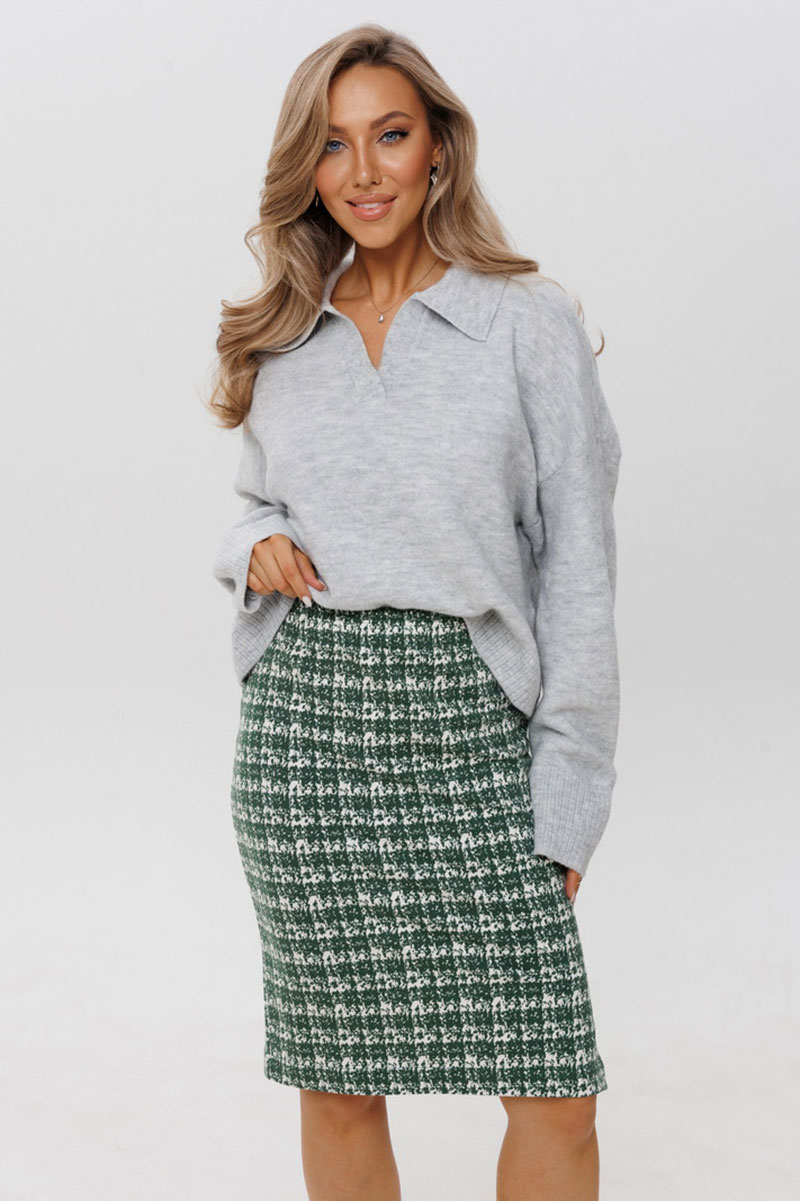 Юбка женская Ю25 (60 см) футер 2-х нитка пенье набивной (р-ры: 46-60) зеленый