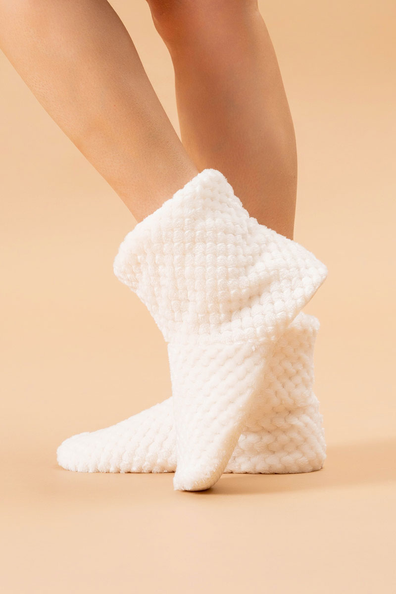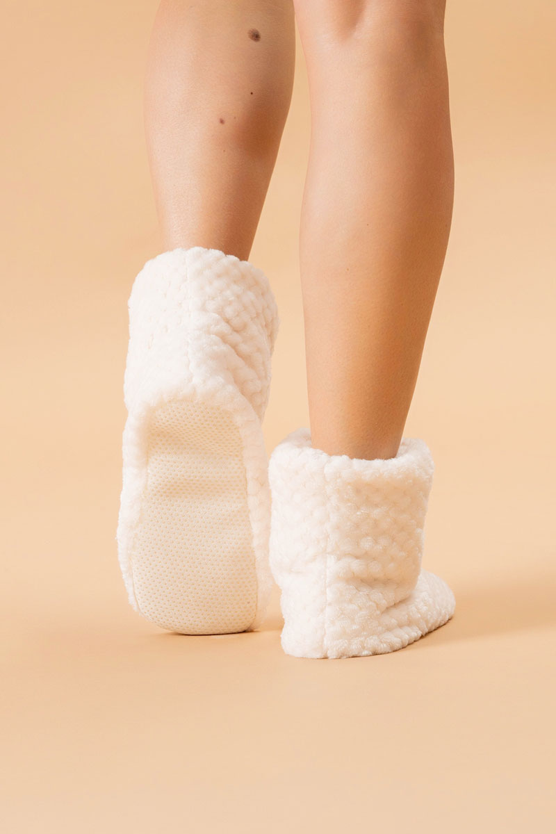 Тапки женские "Сапожки" велсофт (р-ры: 36-41) соты молочный