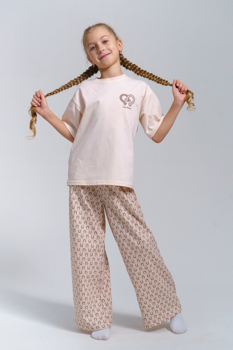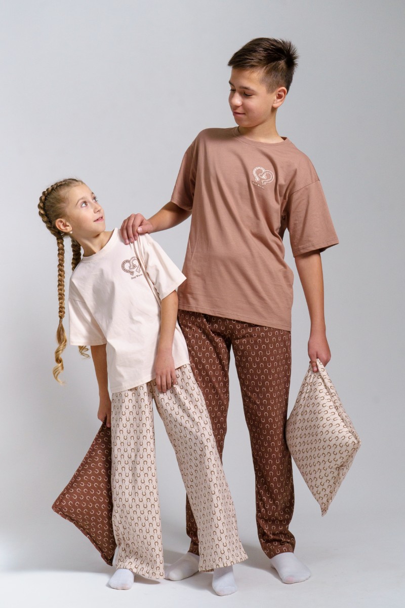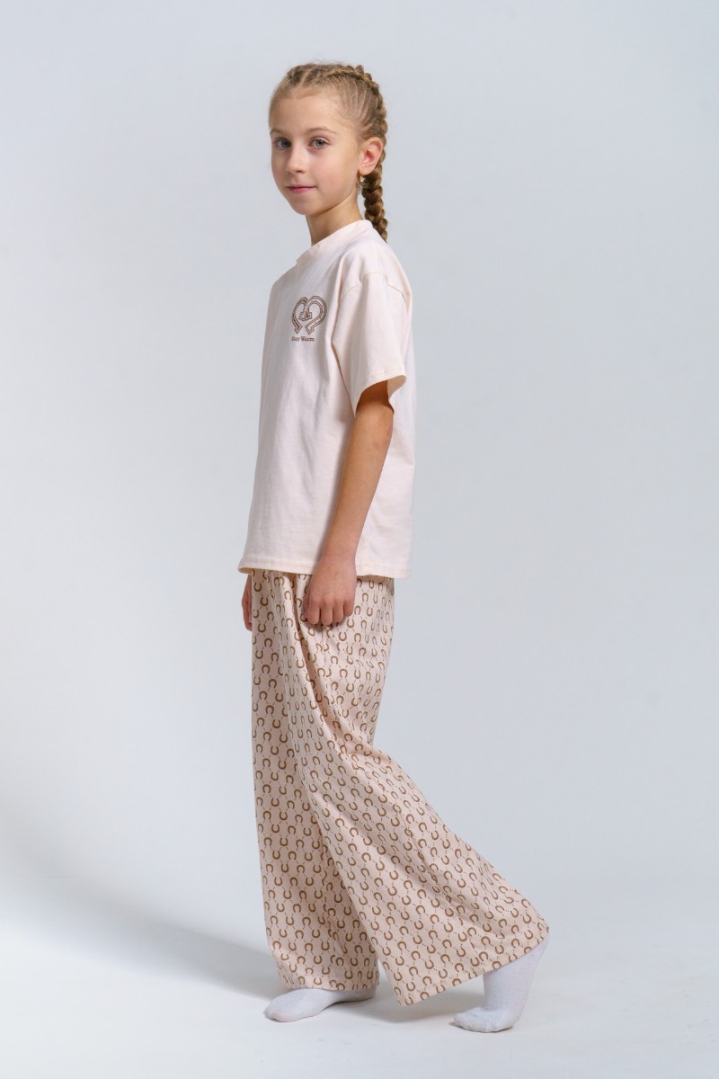 Представляем Вашему вниманию легкую детскую пижаму, состоящую из футболки и длинных свободных брюк. Комплект сшит из приятной телу, высококачественной кулирки - 100% натуральный хлопок, который отлично пропускает воздух, позволяя коже дышать.