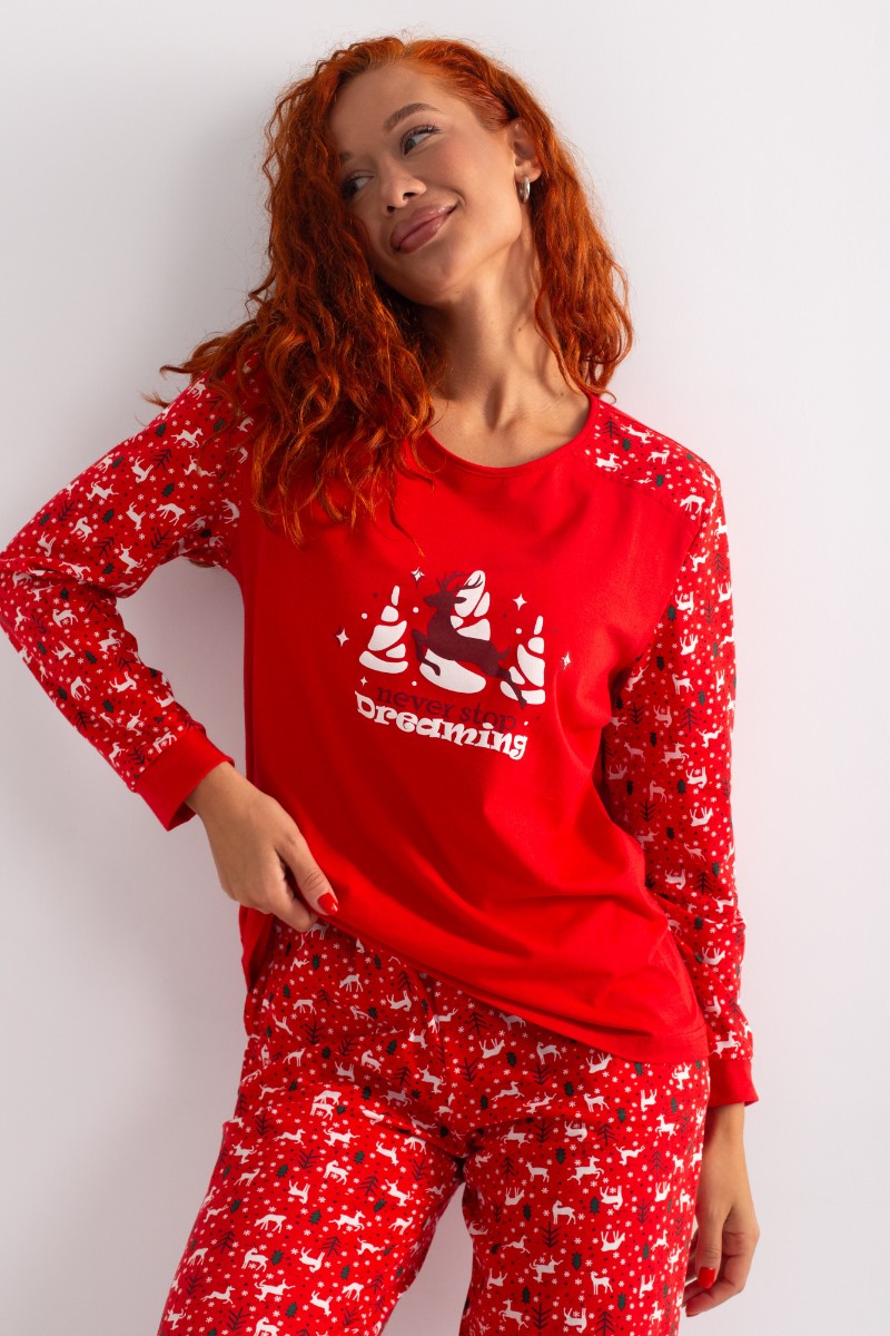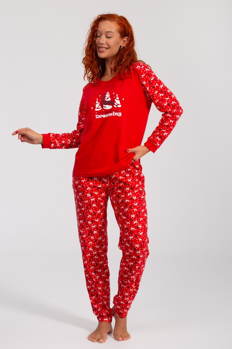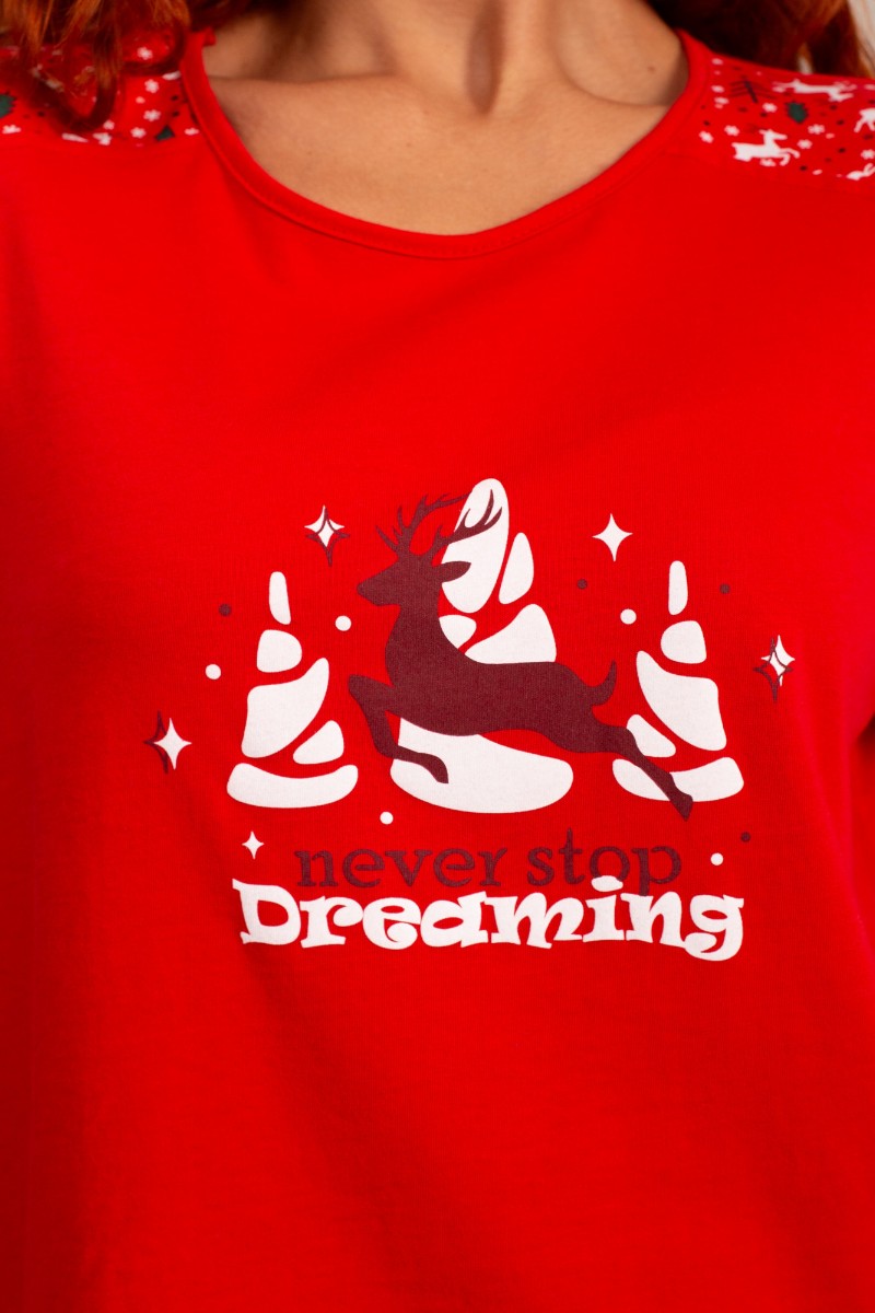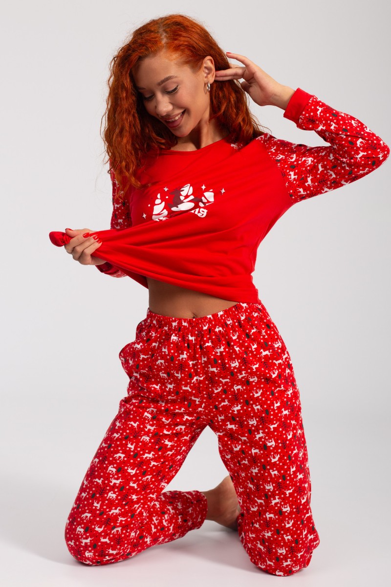 Костюм двойка женский НГ-01 "Зимний лес" кулирка (р-ры: 44-56) красный