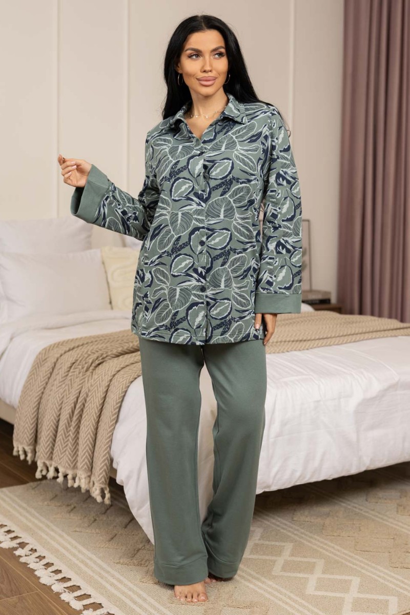 Пижама женская 2093 футер с начесом (р-ры: 48-62) зеленый