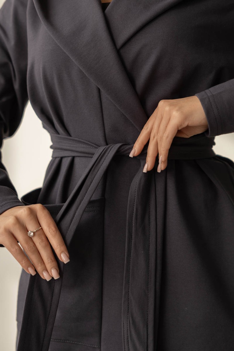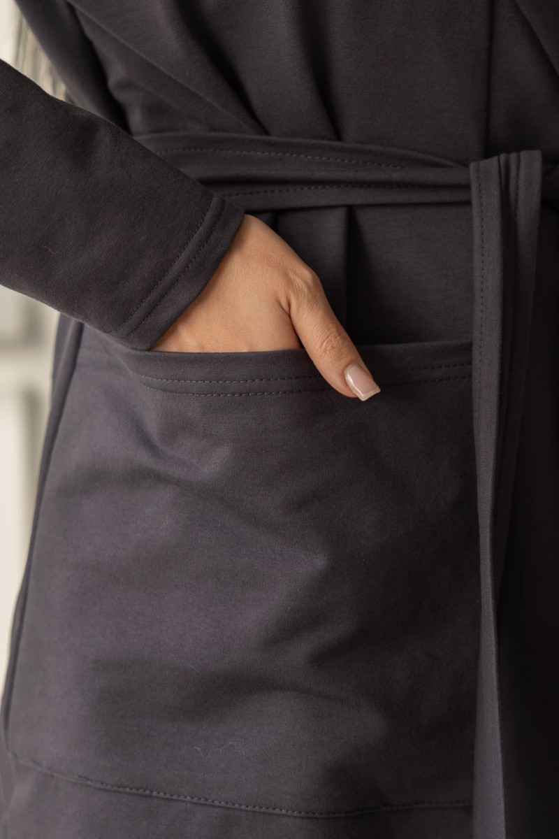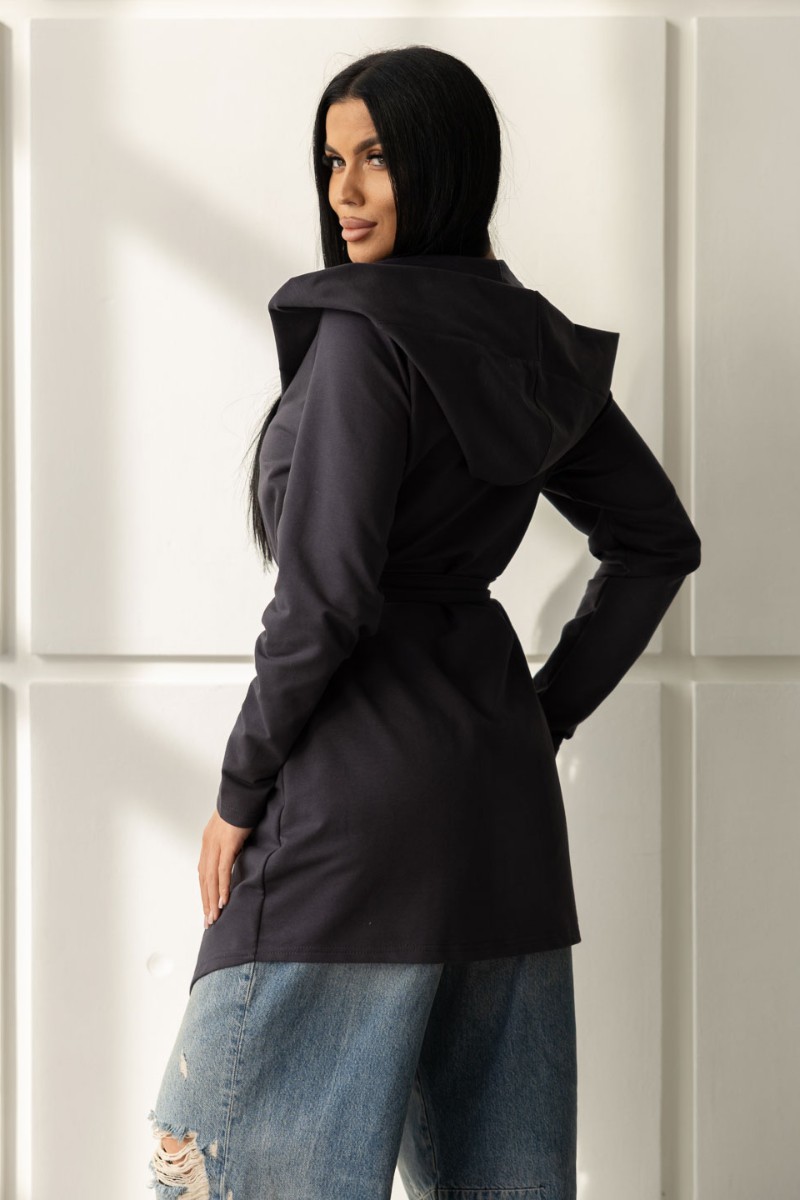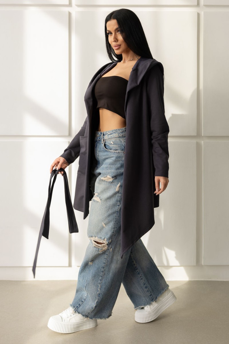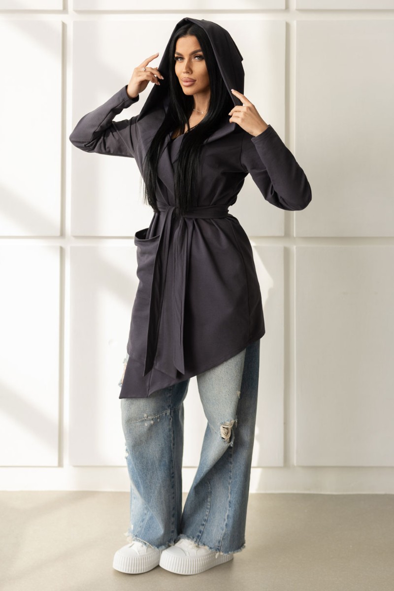 Представляем Вашему вниманию кардиган женский с асимметричной линией низа, объемным капюшоном и карманом на правой стороне. Изделие укомплектовано поясом.