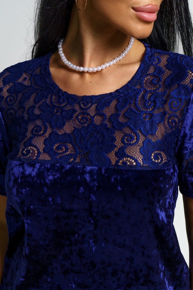 Костюм двойка женский "Маркиза" бархат+гипюр (последний размер) сапфир 48,50