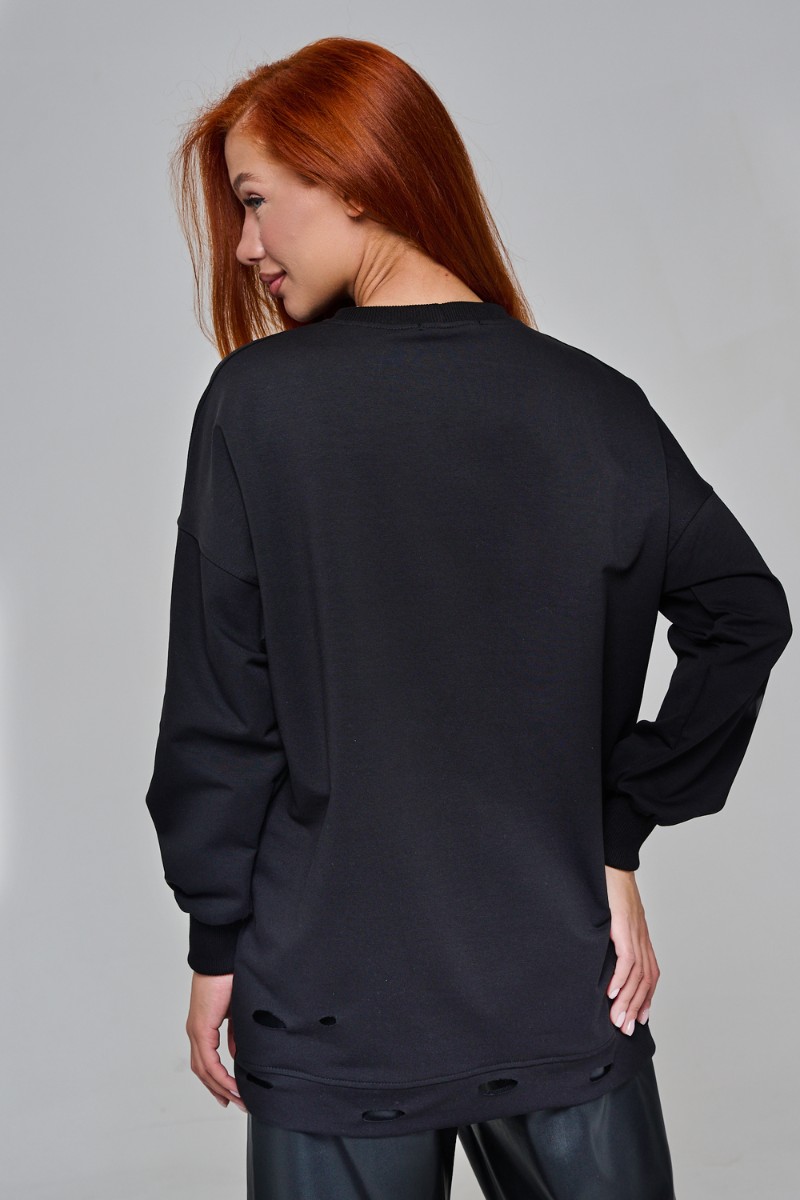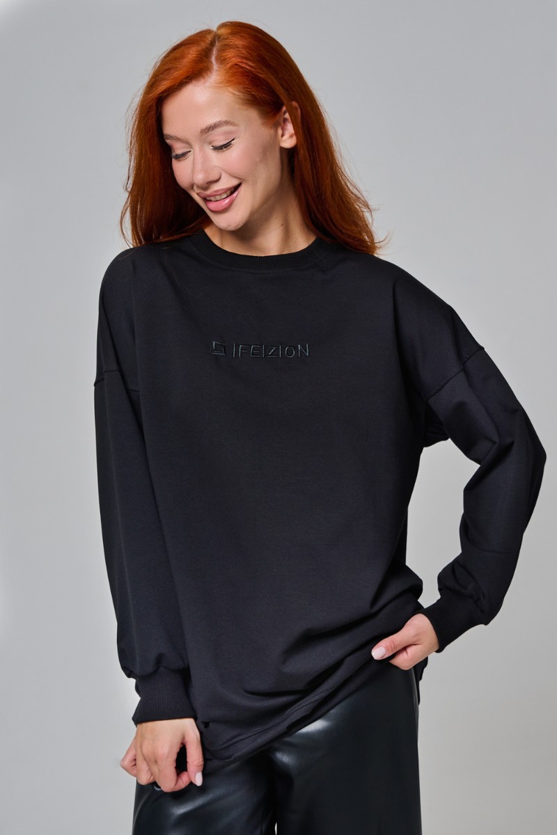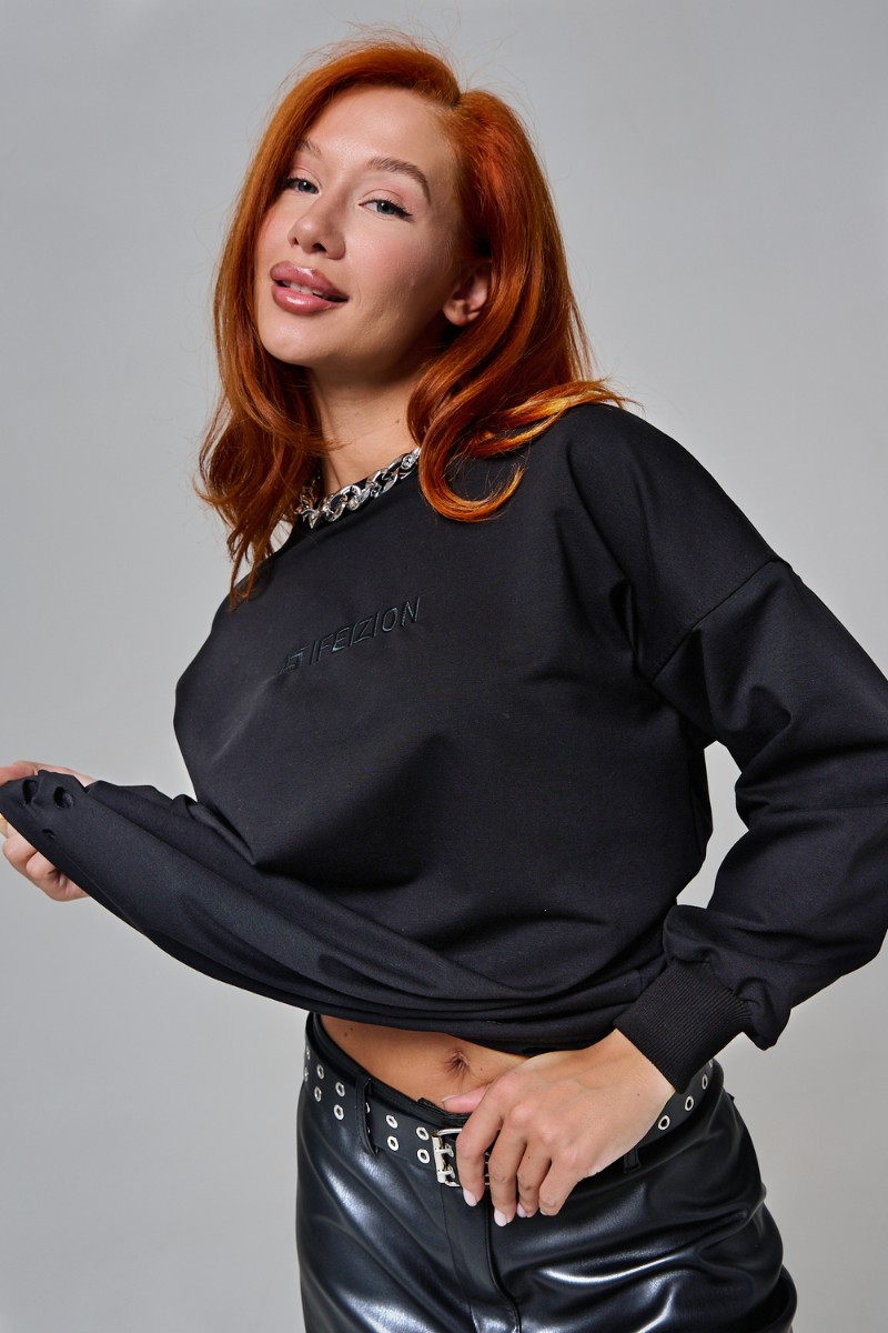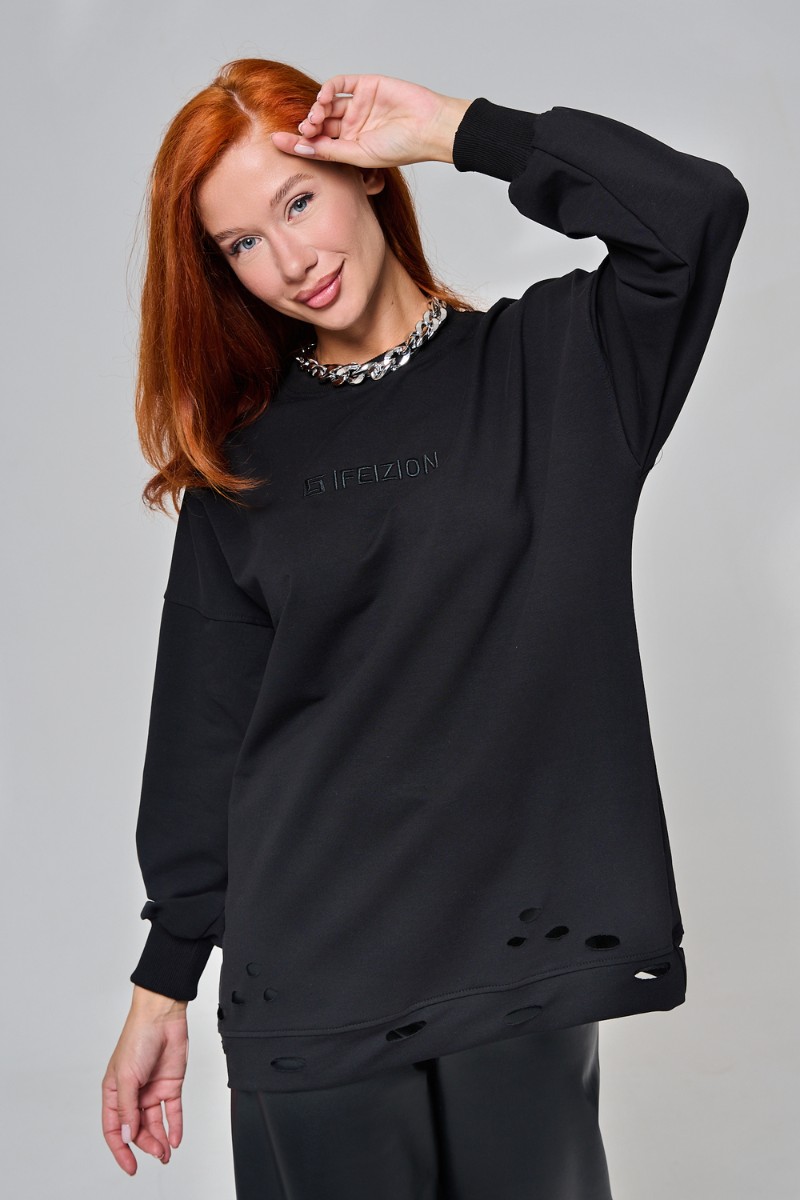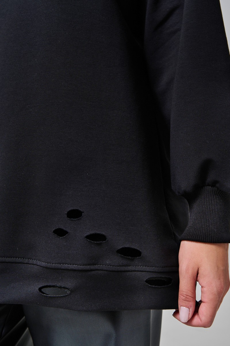 Толстовка женская №67188 футер с лайкрой 2-х нитка (р-ры: 44-60) черный