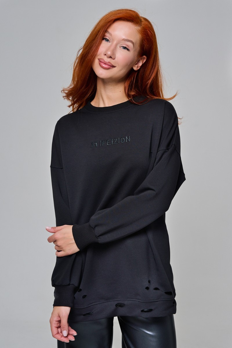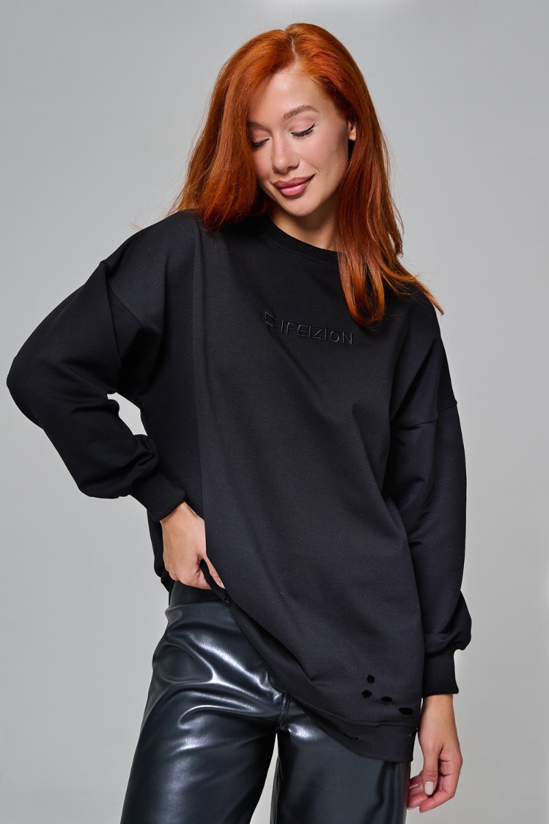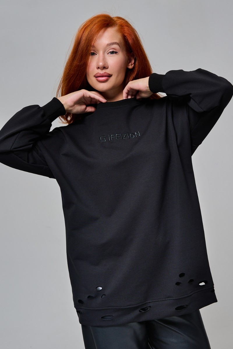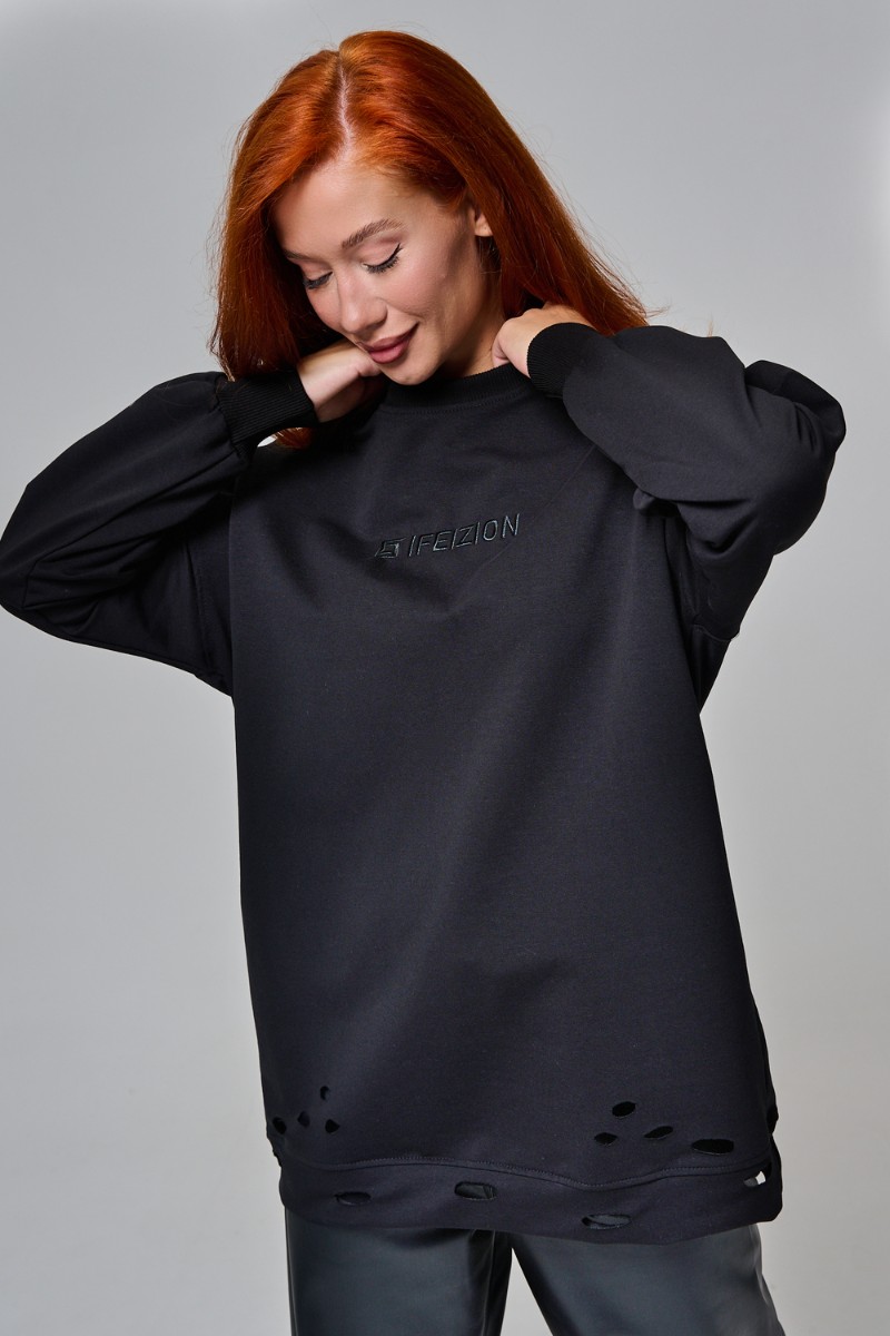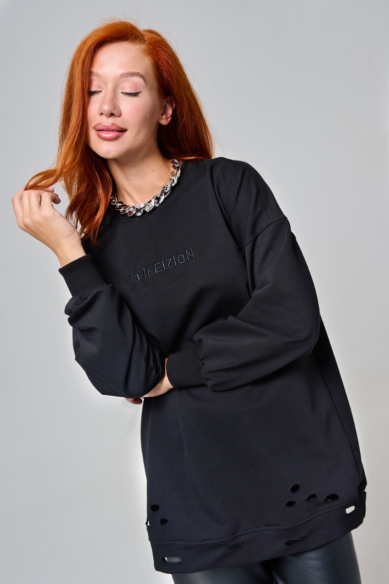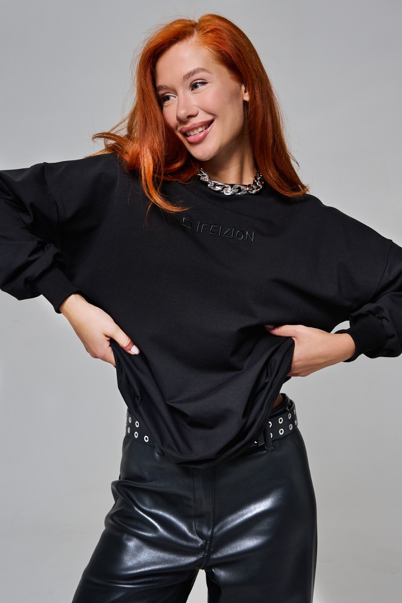 Толстовка женская №67188 футер с лайкрой 2-х нитка (р-ры: 44-60) черный