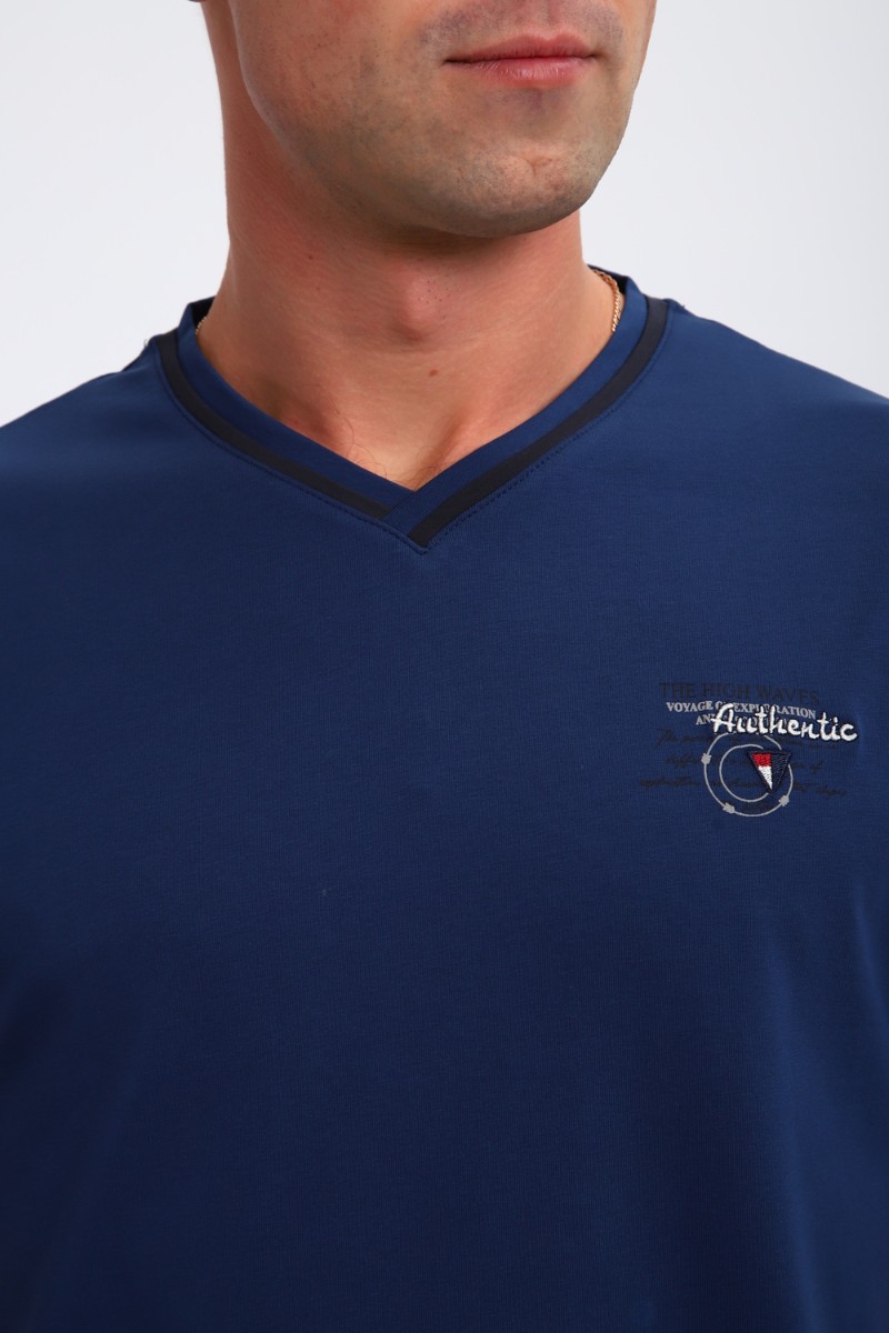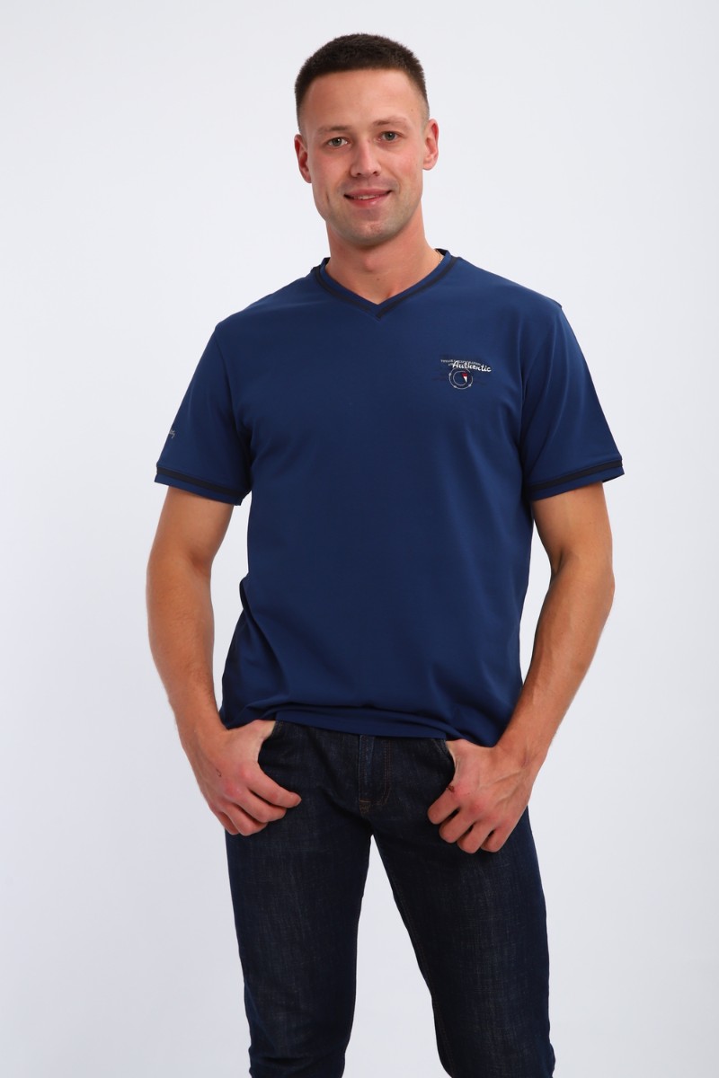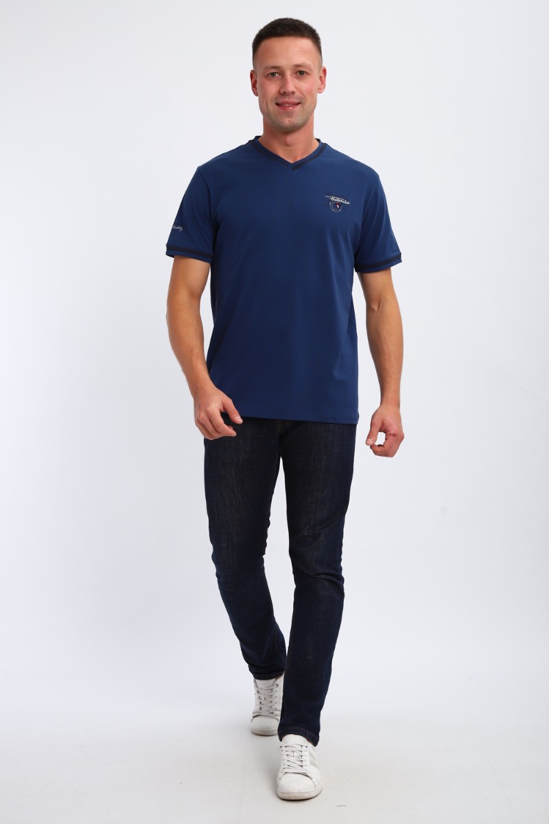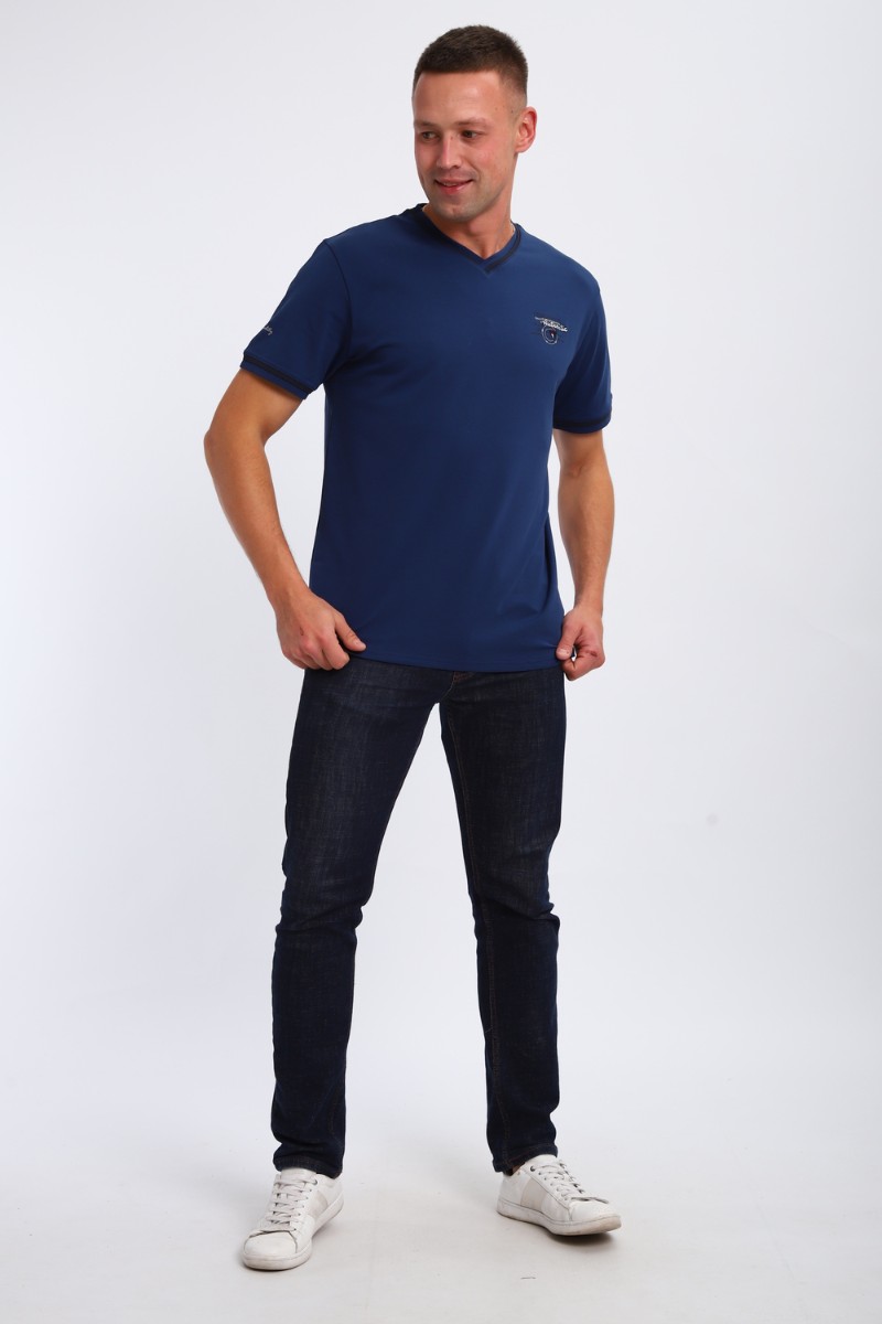 Футболка мужская №059 кулирка с лайкрой пенье (р-ры: M-6XL) индиго