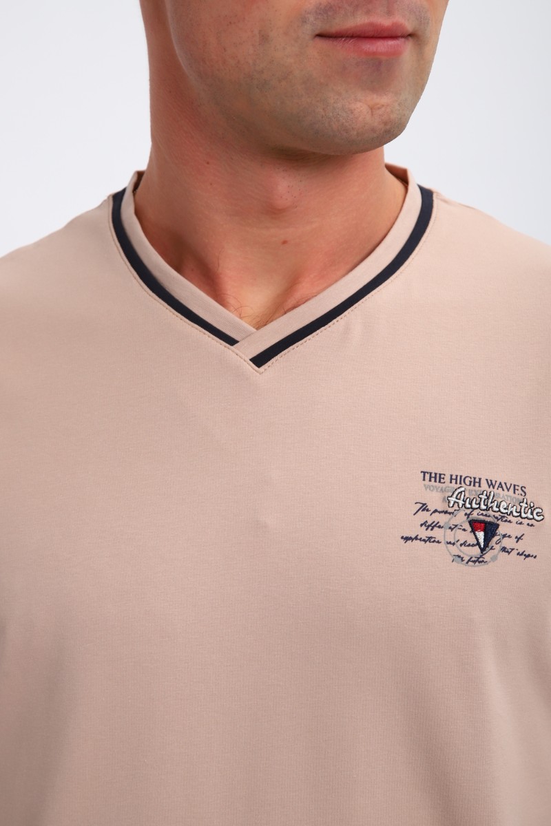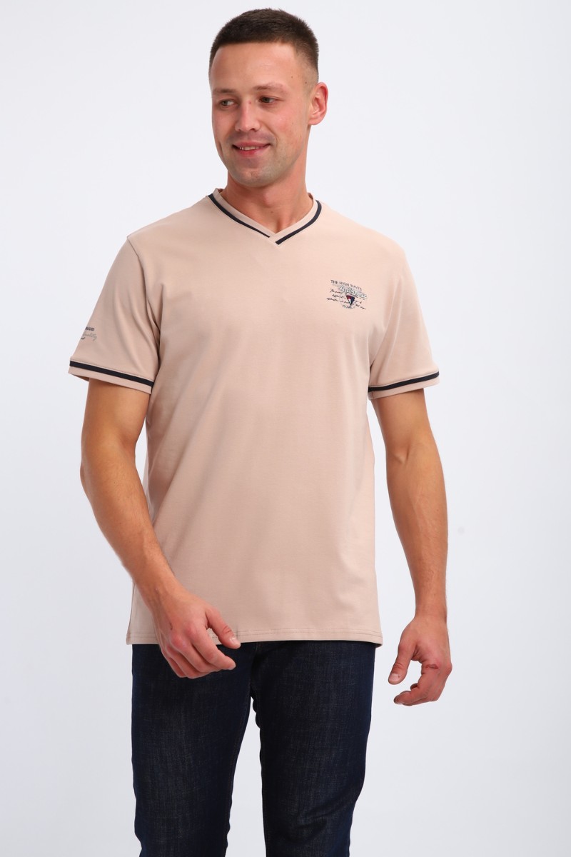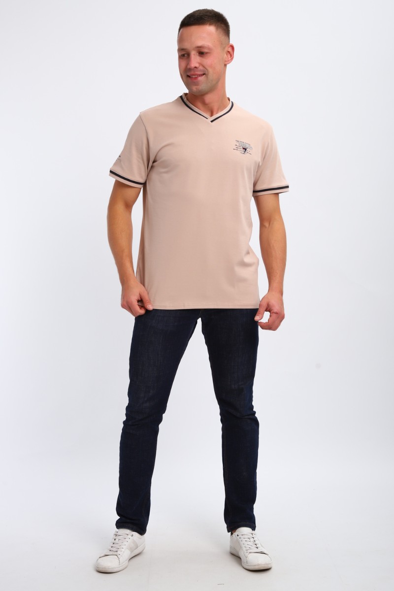 Футболка мужская №059 кулирка с лайкрой пенье (р-ры: M-6XL) бежевый
