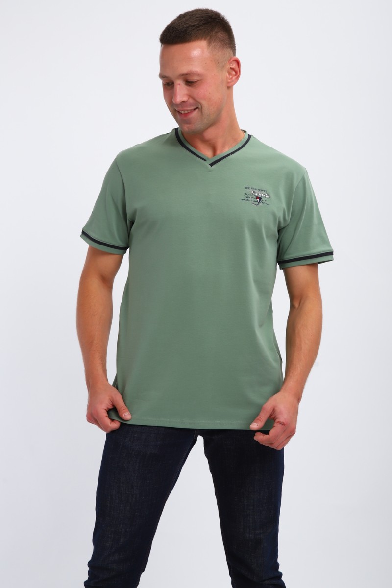 Футболка мужская №059 кулирка с лайкрой пенье (р-ры: M-6XL) оливковый