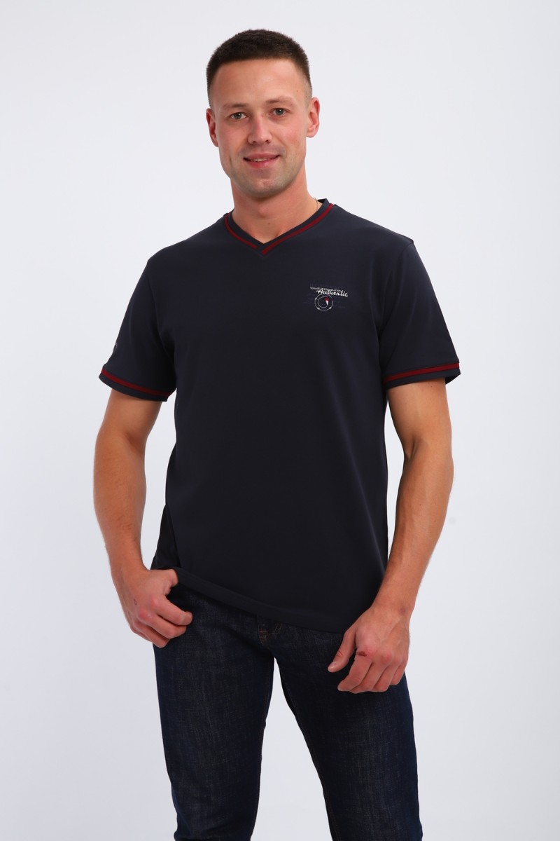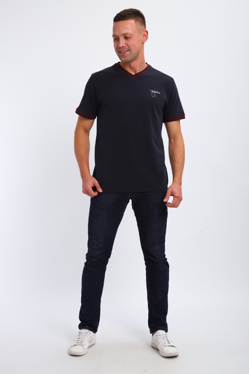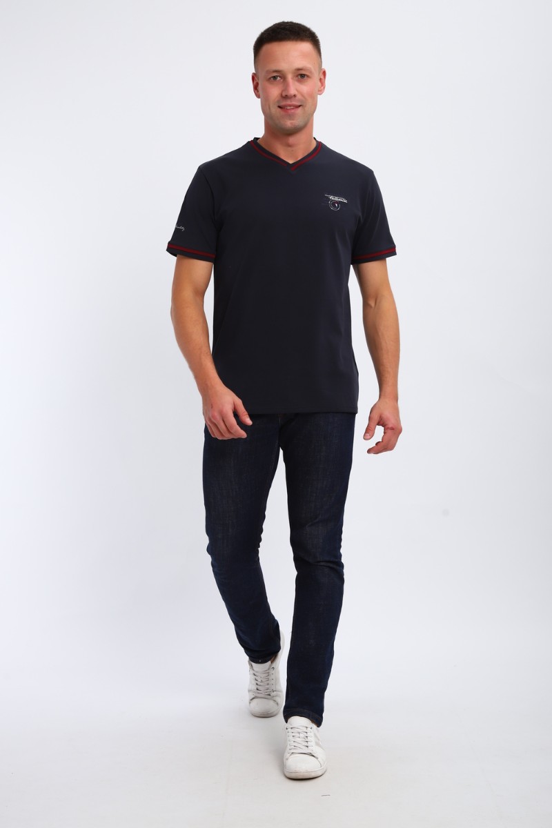 Футболка мужская №059 кулирка с лайкрой пенье (р-ры: M-6XL) темно-синий