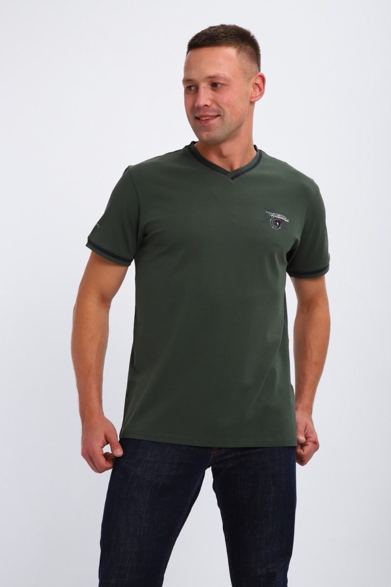 Футболка мужская №059 кулирка с лайкрой пенье (р-ры: M-6XL) хаки