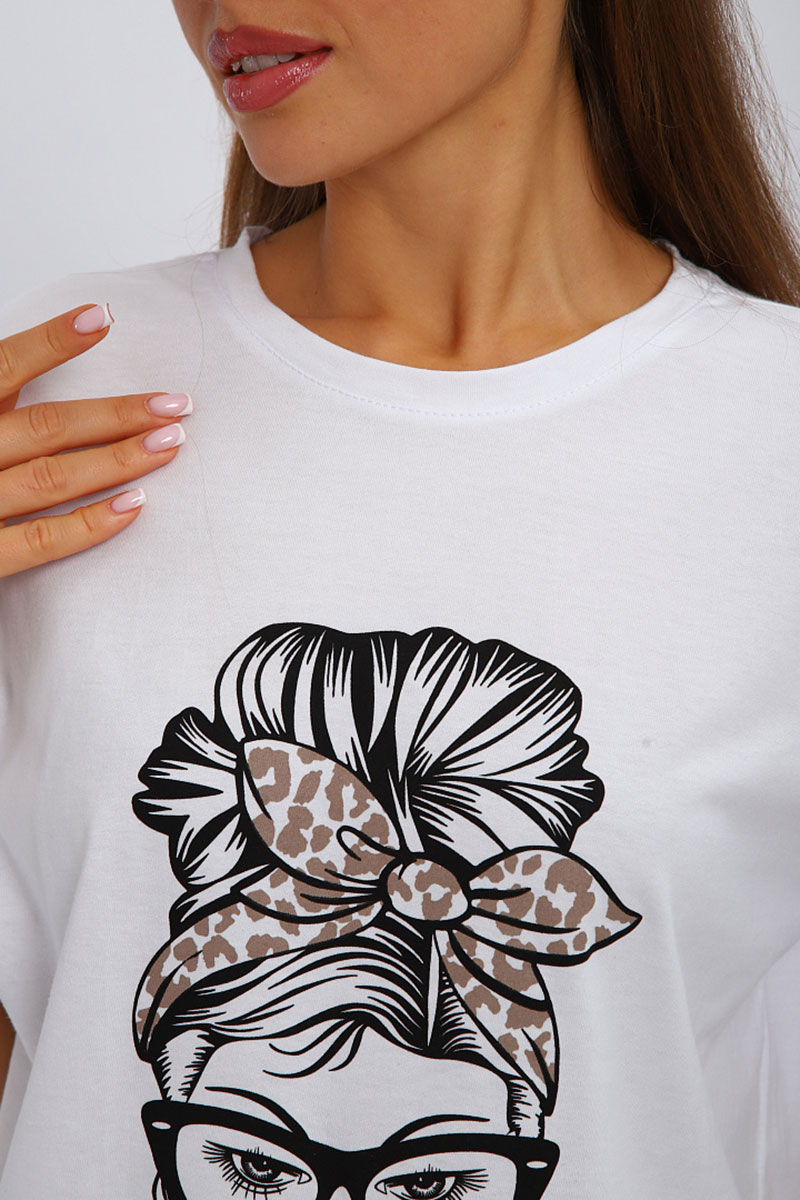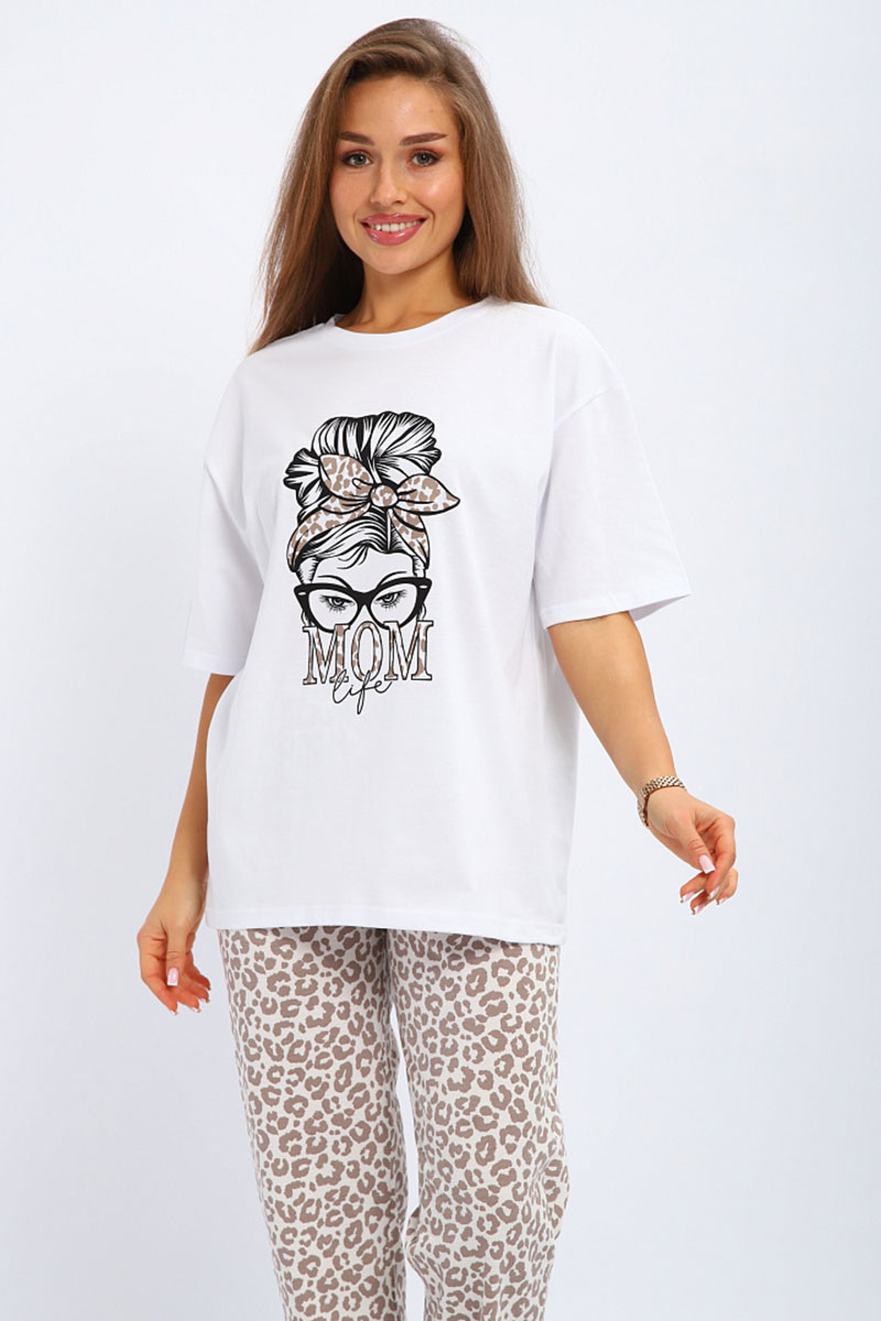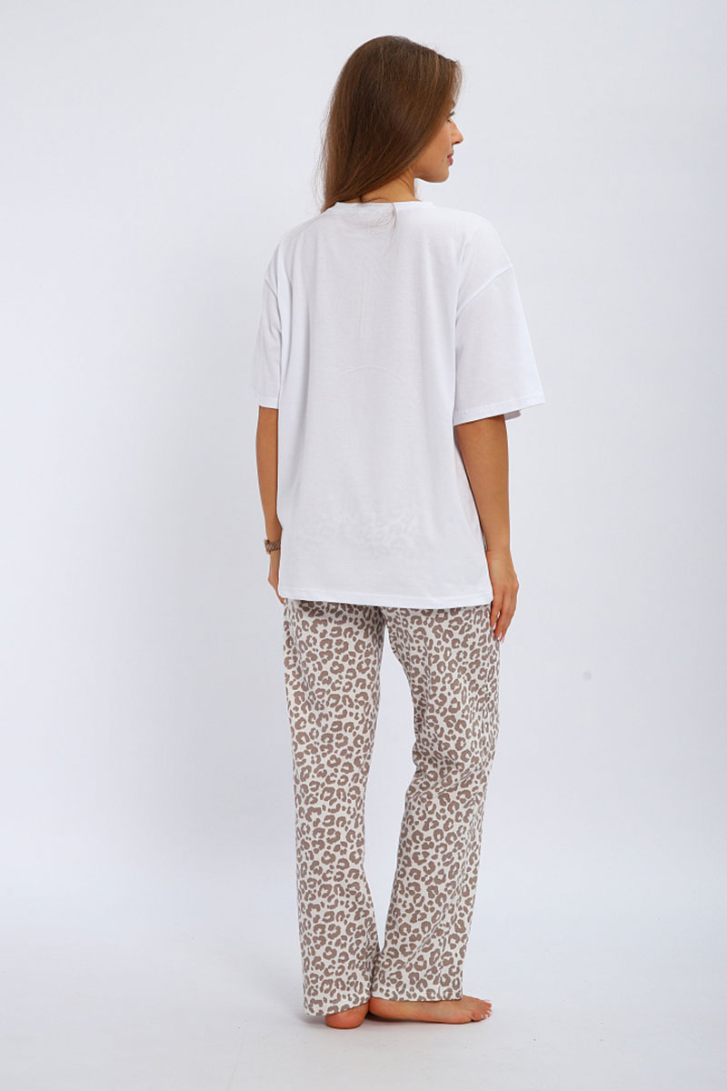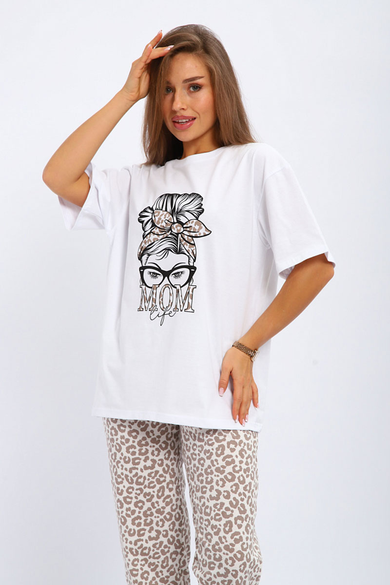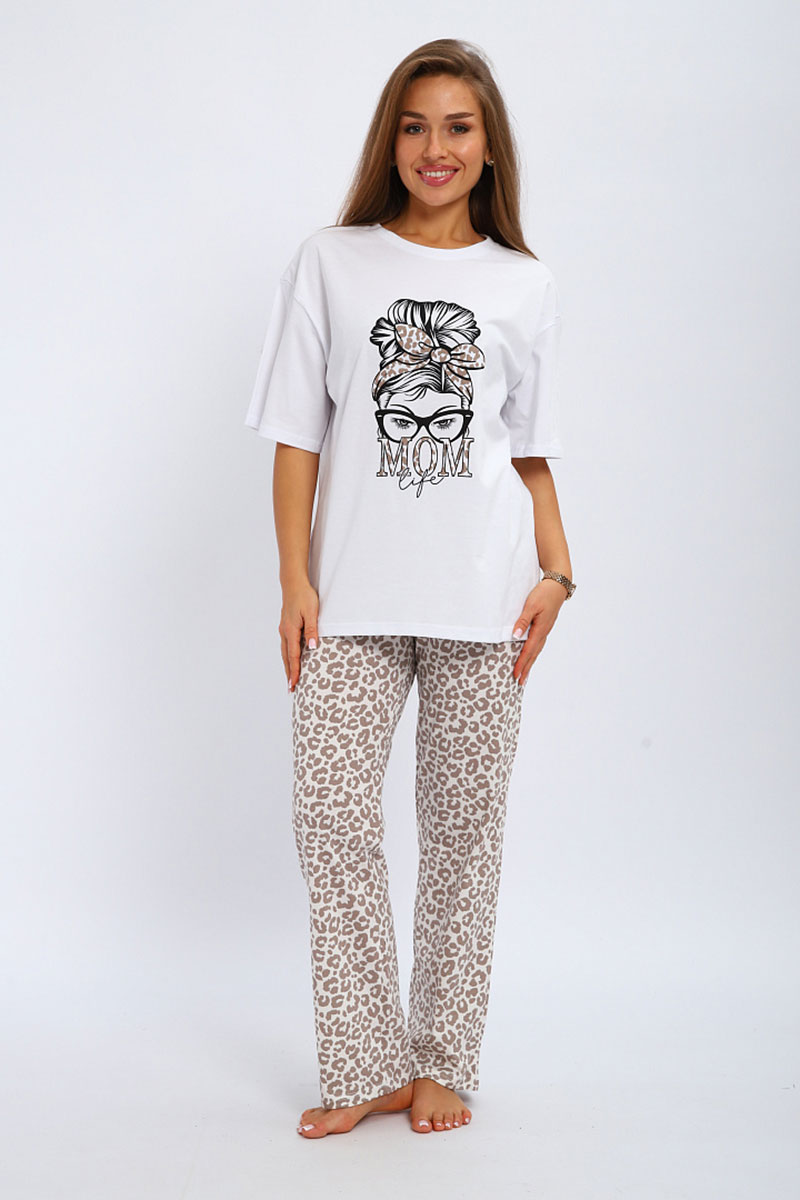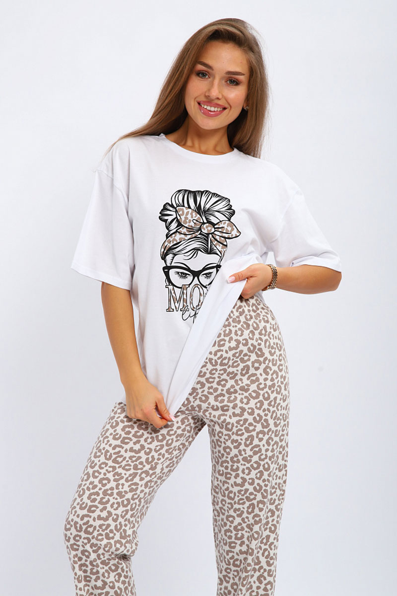 Представляем Вашему вниманию женский костюм. Выполнен из трикотажного полотна кулирка. Костюм состоит из футболки и брюк. Футболка свободного силуэта, с коротким рукавом на полочке выполнена печать. Брюки прямого кроя, пояс на резинке. Стильный наряд для прогулок и отдыха!