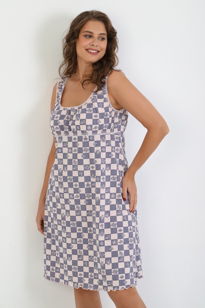 Сорочка женская "Татьяна" кулирка (р-ры: 46-60) расцветка 3 клетки с цветами