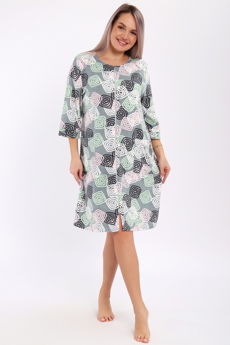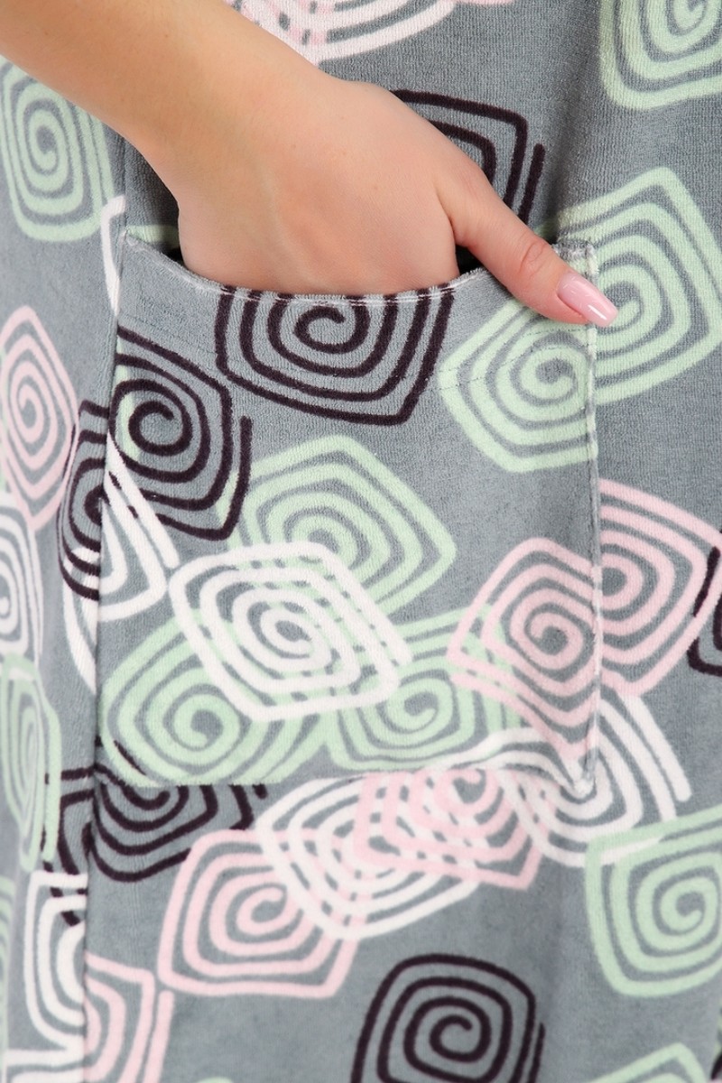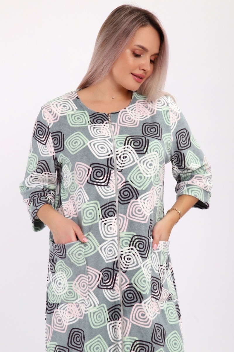 Представляем Вашему вниманию мягкий и уютный женский халат, сшитый из приятной телу, высококачественной махры. Модель имеет элегантную расцветку, которая интересно смотрится и поднимает настроение. Изделие красиво сидит на фигуре и подчеркивает её достоинства. В нём Вы будете чувствовать себя комфортно и уверенно.