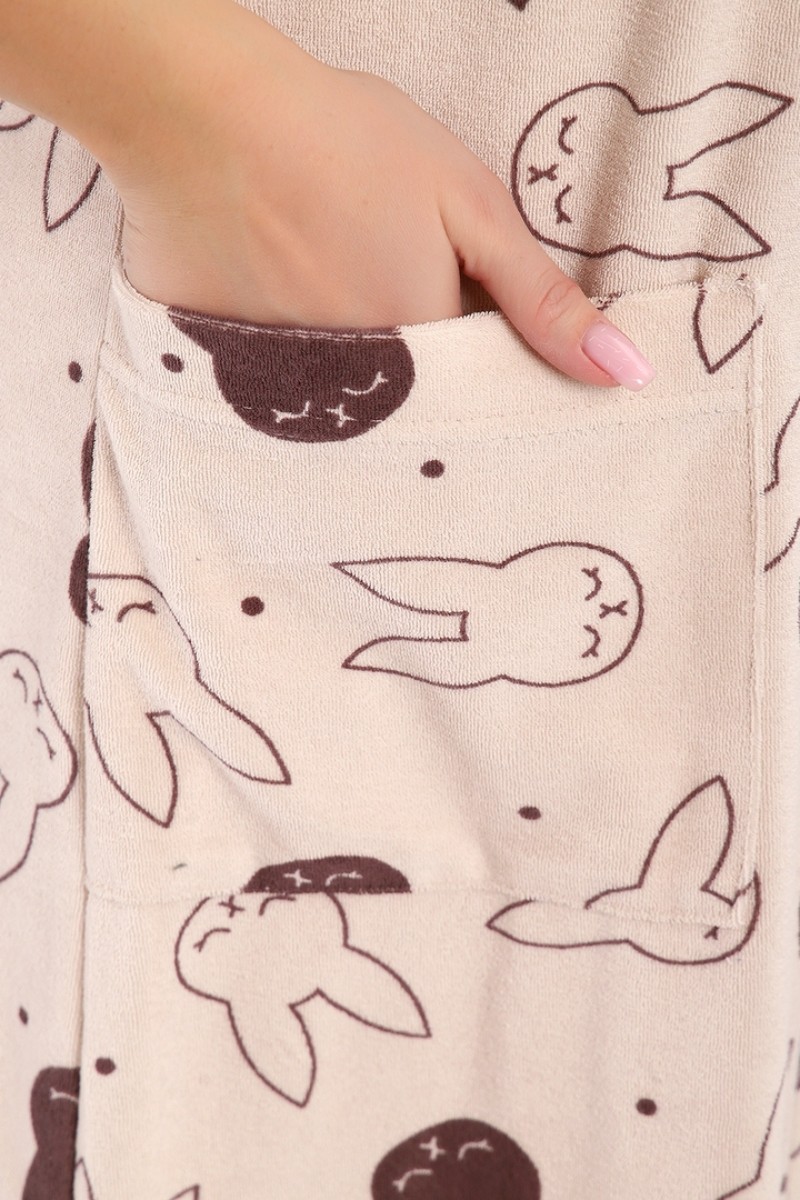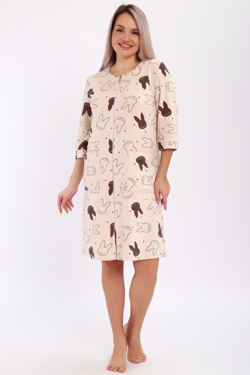 Халат женский 513 махра (р-ры: 46-60) зайцы песочный