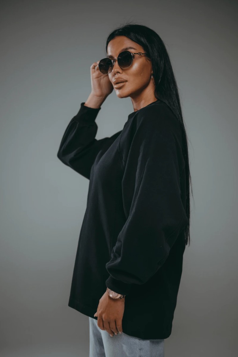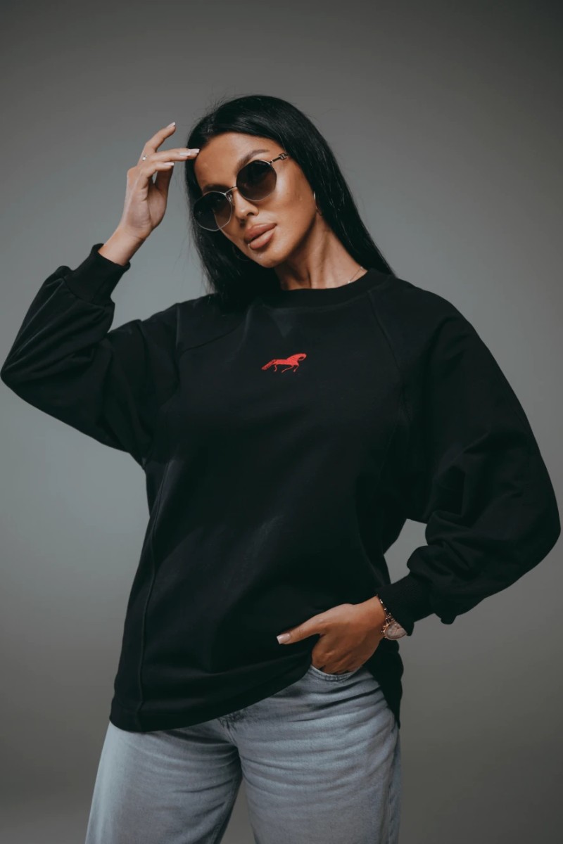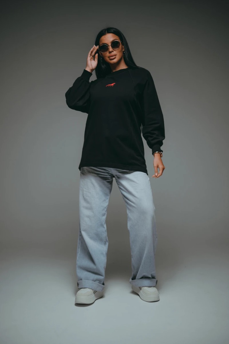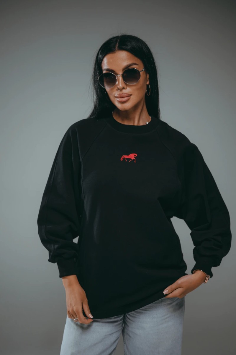 Свитшот женский "Символ" футер 2-х нитка пенье фирча (р-ры: 46-60) черный