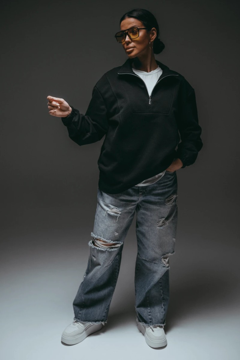 Представляем Вашему вниманию свитшот женский с воротником стойкой на молнии — стильная и практичная модель для повседневных образов. Полочка с кокеткой фигурной формы и рельефными швами. Свободный оверсайз-крой в стиле old money обеспечивает комфорт и свободу движений. Свитшот с мягким начесом - идеальный выбор для создания модных образов этой осенью и зимой 2026г.