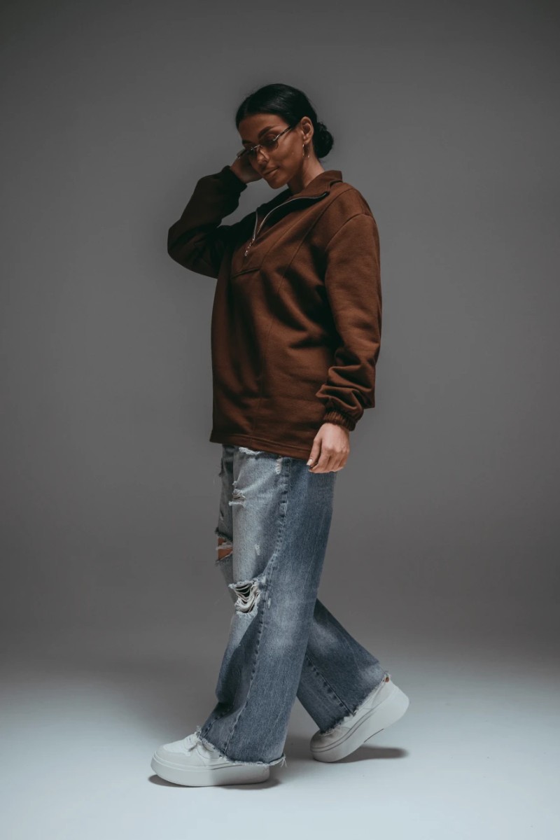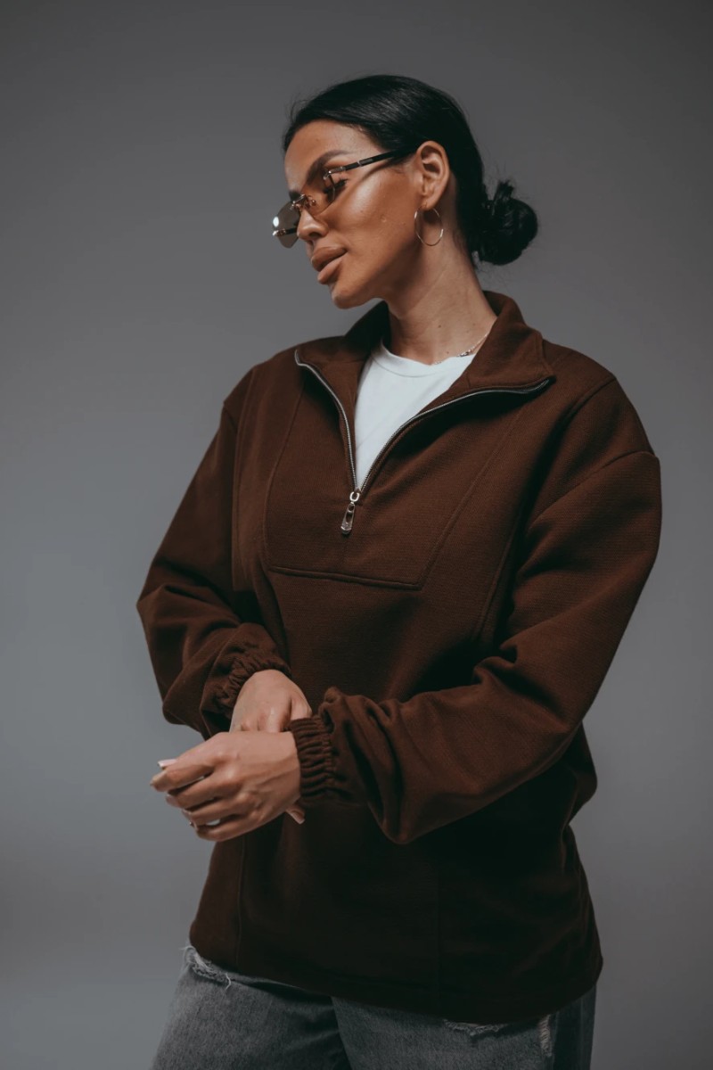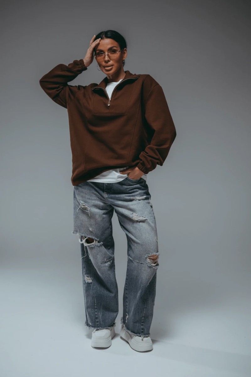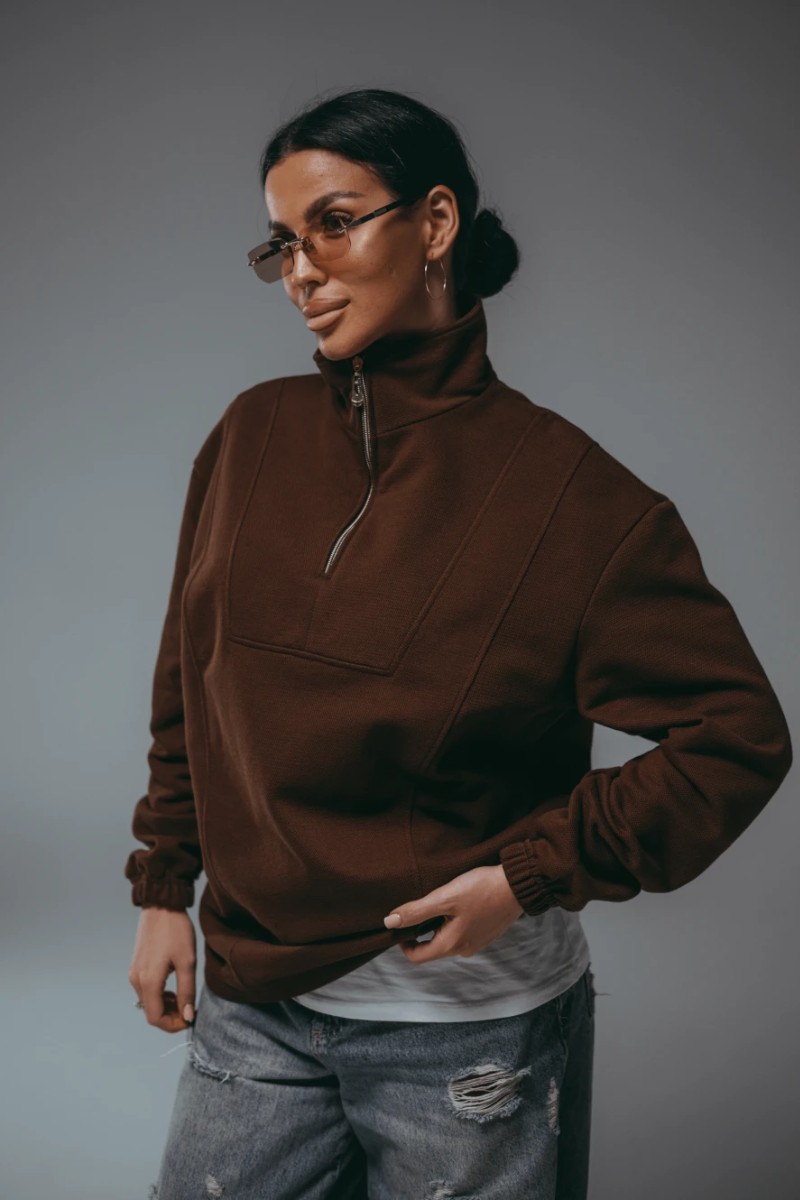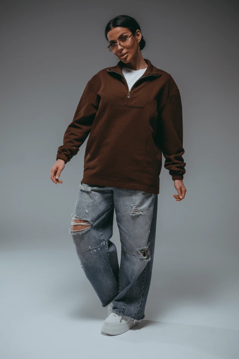 Представляем Вашему вниманию свитшот женский с воротником стойкой на молнии — стильная и практичная модель для повседневных образов. Полочка с кокеткой фигурной формы и рельефными швами. Свободный оверсайз-крой в стиле old money обеспечивает комфорт и свободу движений. Свитшот с мягким начесом - идеальный выбор для создания модных образов этой осенью и зимой 2026г.