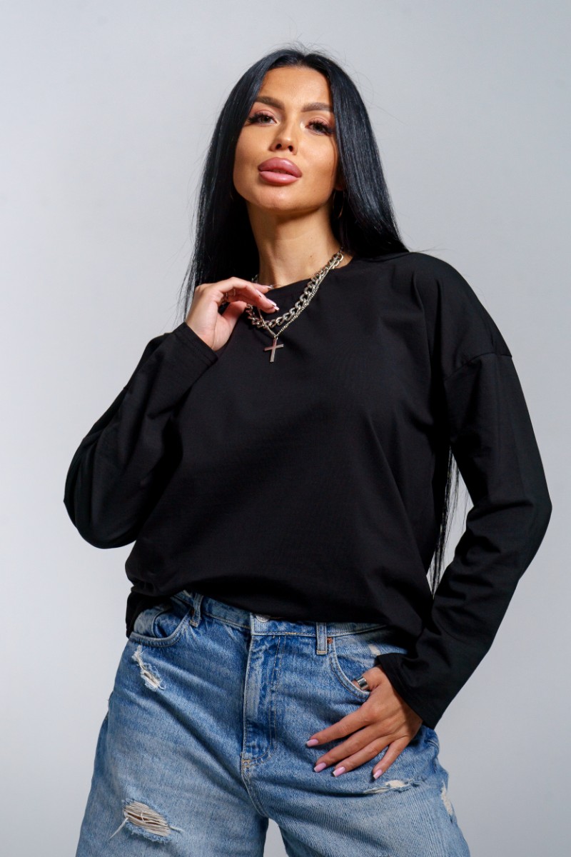 Лонгслив женский "Лика" кулирка (р-ры: 44-54) черный