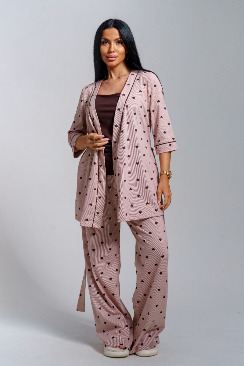 Пижама тройка женская "Асти" кулирка (р-ры: 48-58) шоколад
