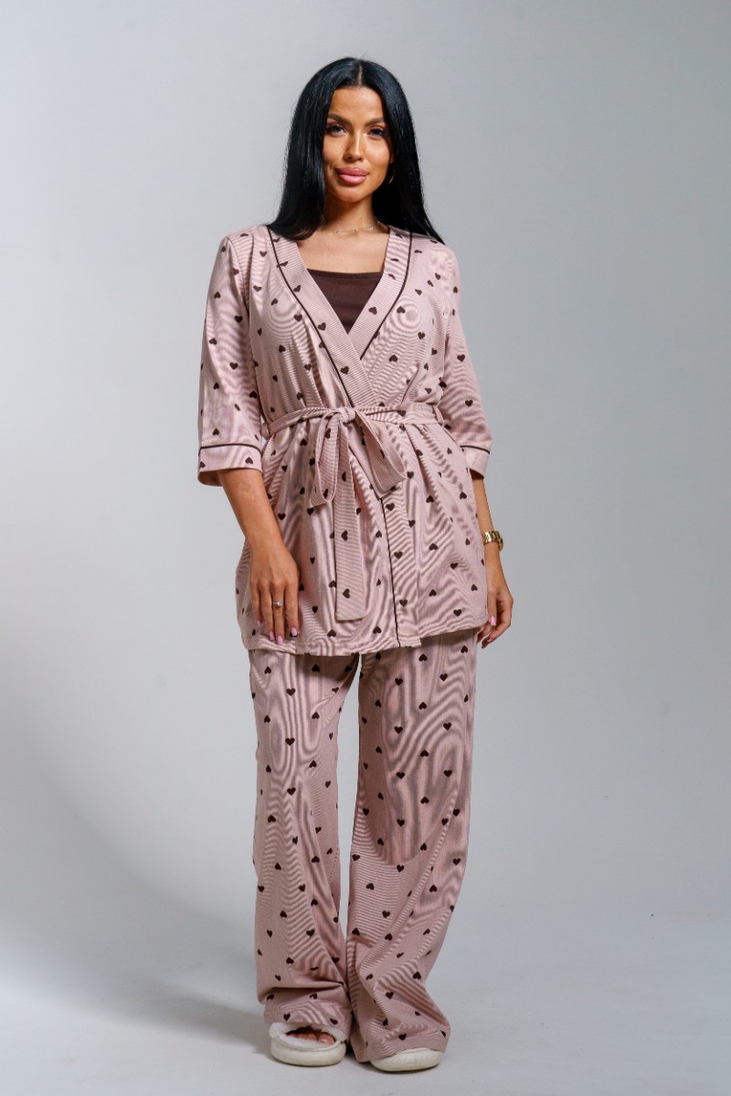 Представляем Вашему вниманию женскую пижаму-тройку из хлопка. Нежная и удобная комплектная пижама создана специально для комфортного сна и домашнего отдыха. Мягкий трикотажный состав из натурального хлопка гарантирует приятное ощущение на коже и поддерживает оптимальный микроклимат тела.