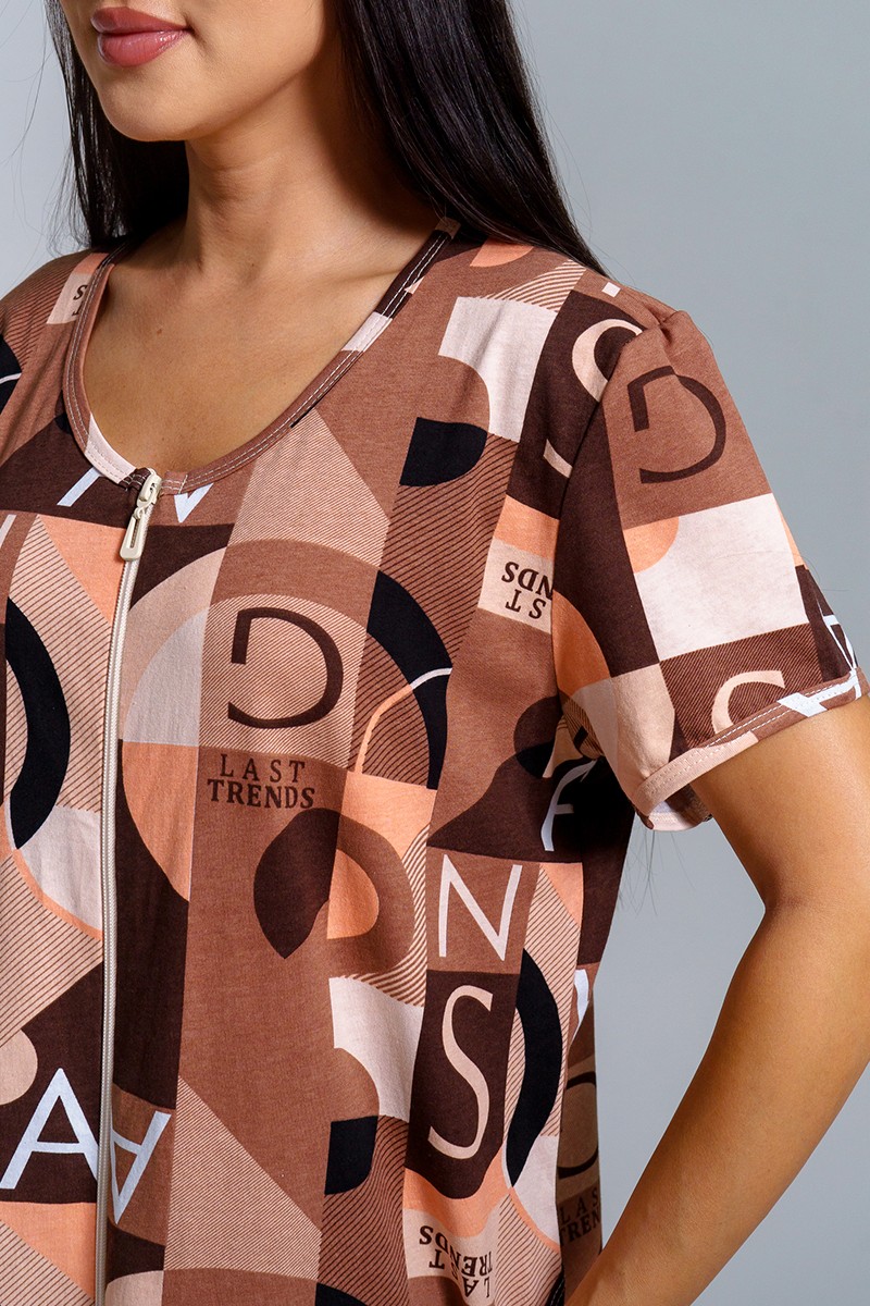 Представляем Вашему вниманию легкий женский халат из кулирки - 100% натурального, дышащего хлопка. Халат с коротким рукавом на молнии, в боковых швах карманы, горловина и низ рукава окантованы. Модель имеет интересную расцветку, которая красиво смотрится и поднимает настроение. Изделие хорошо сидит на фигуре и подчеркивает её достоинства. В нём Вы будете чувствовать себя комфортно и уверенно.