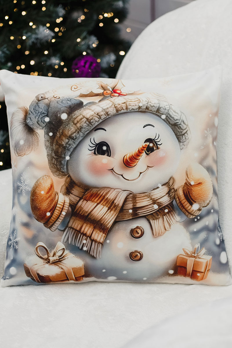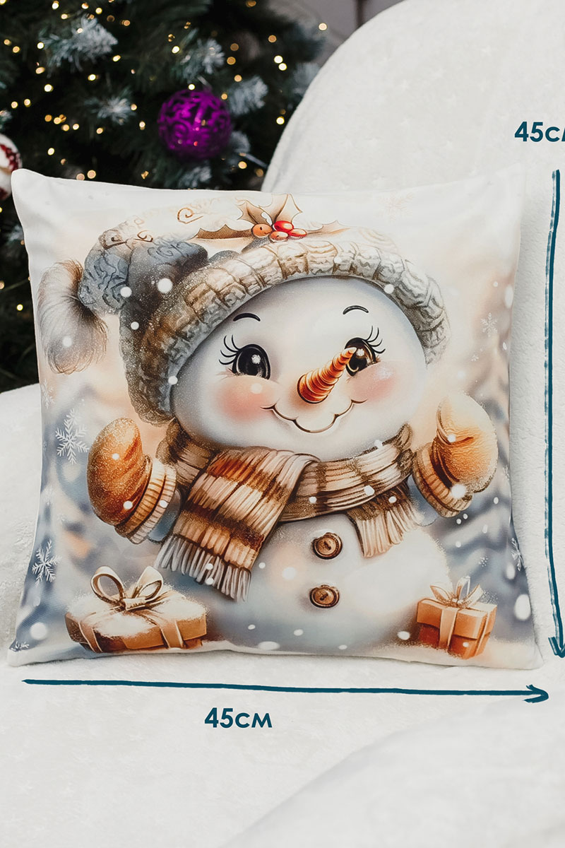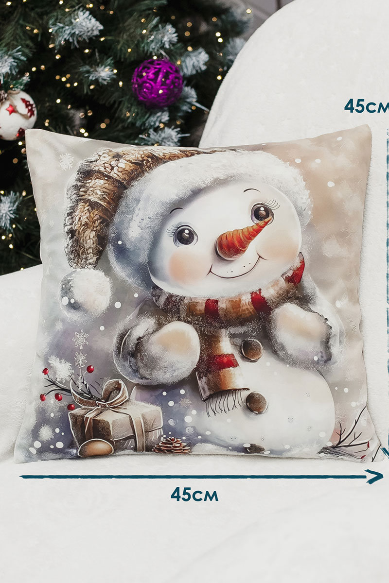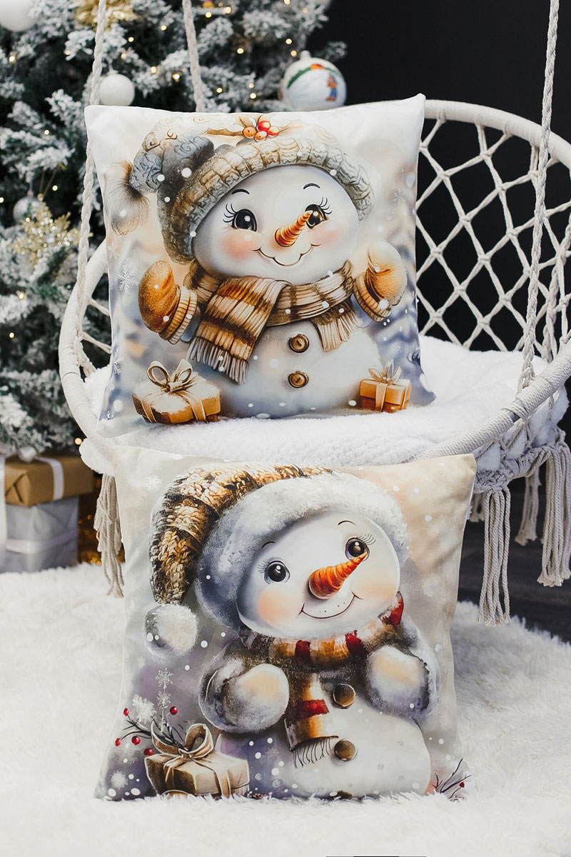 Наволочка-чехол декоративная с 3D-эффектом на молнии "Снеговик с подарками" 2 шт.