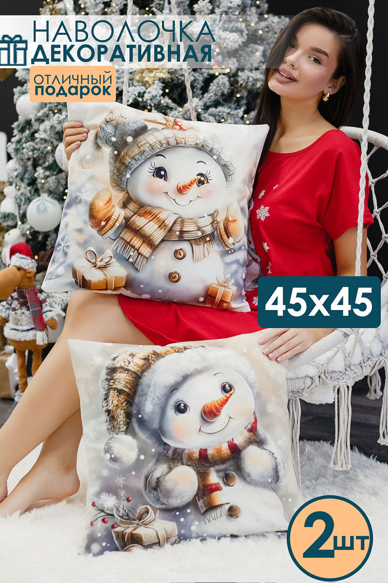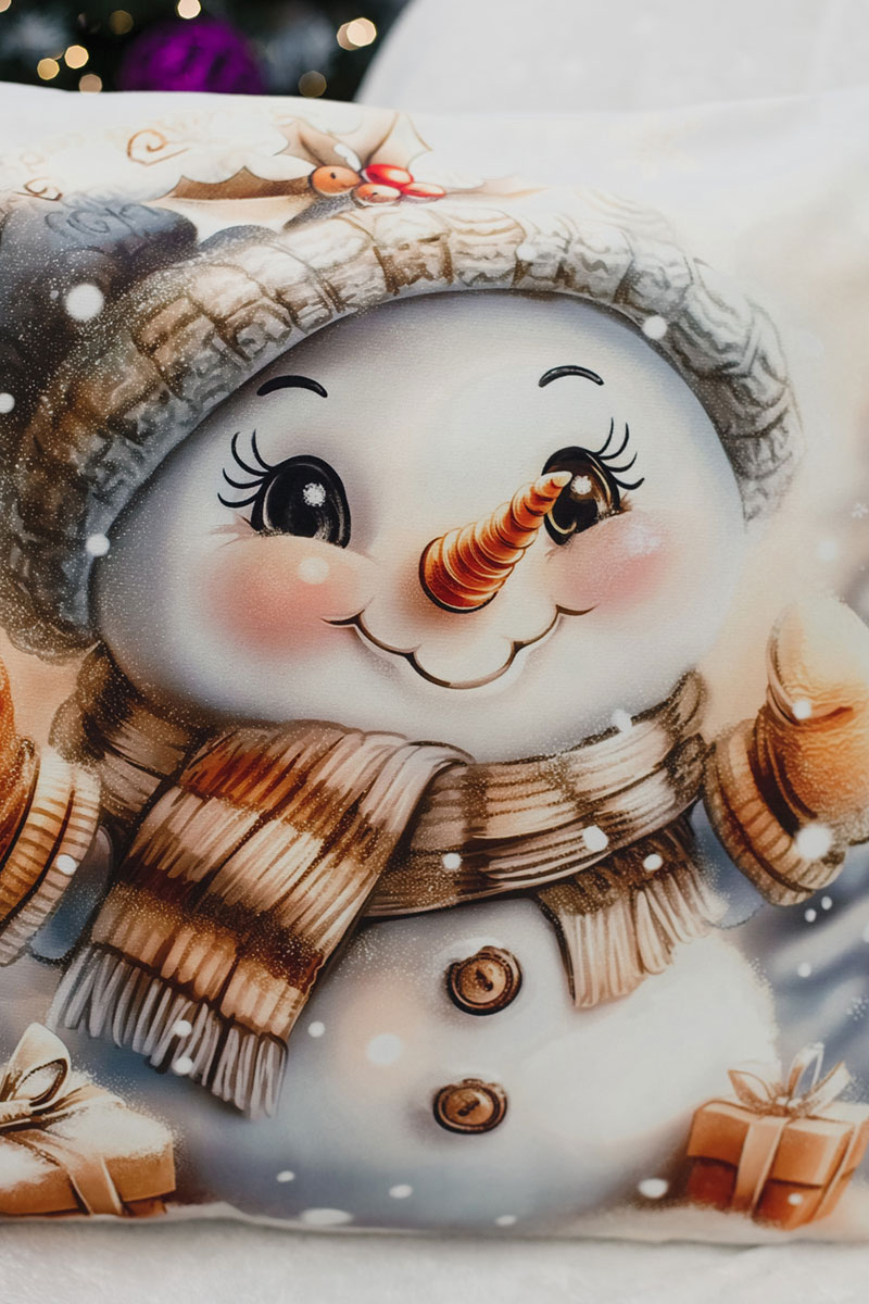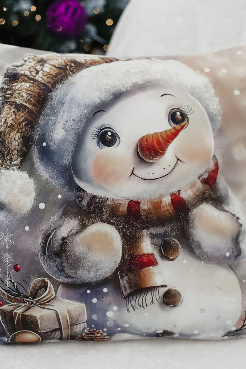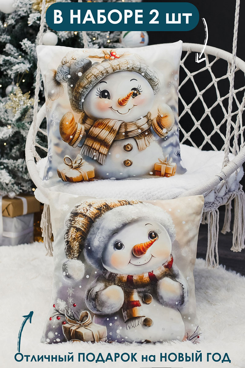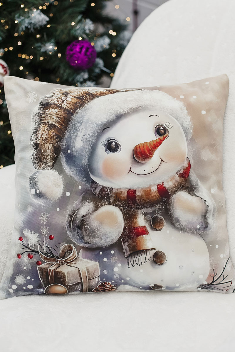 Наволочка-чехол декоративная с 3D-эффектом на молнии "Снеговик с подарками" 2 шт.