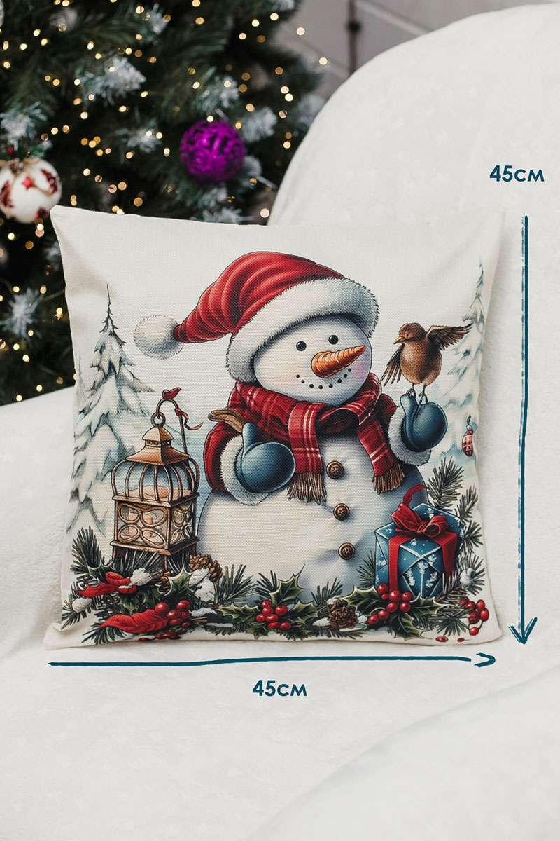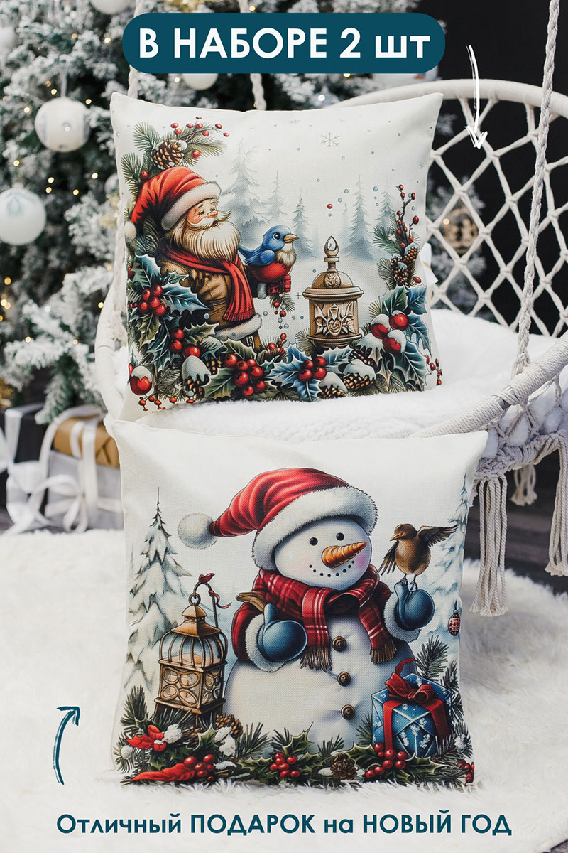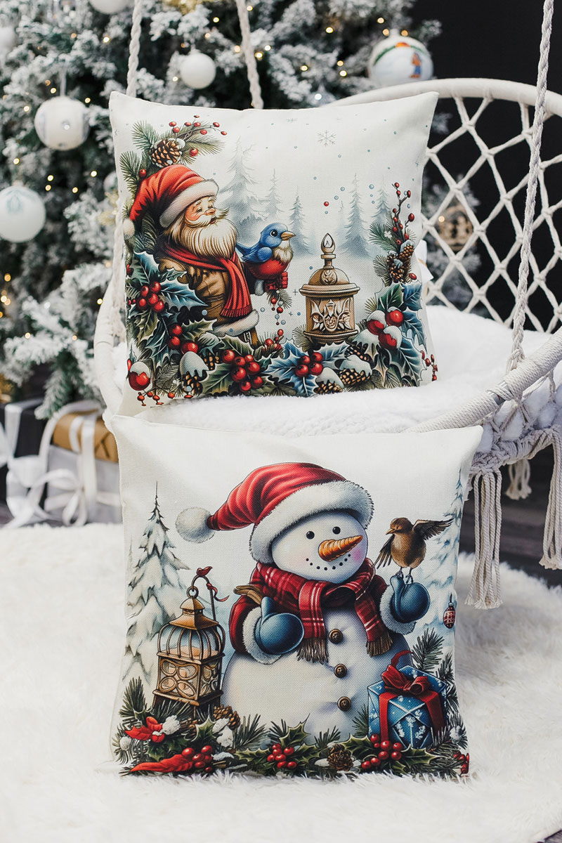 Наволочка-чехол декоративная на молнии "Дед, фонарь, снеговик" 2 шт.