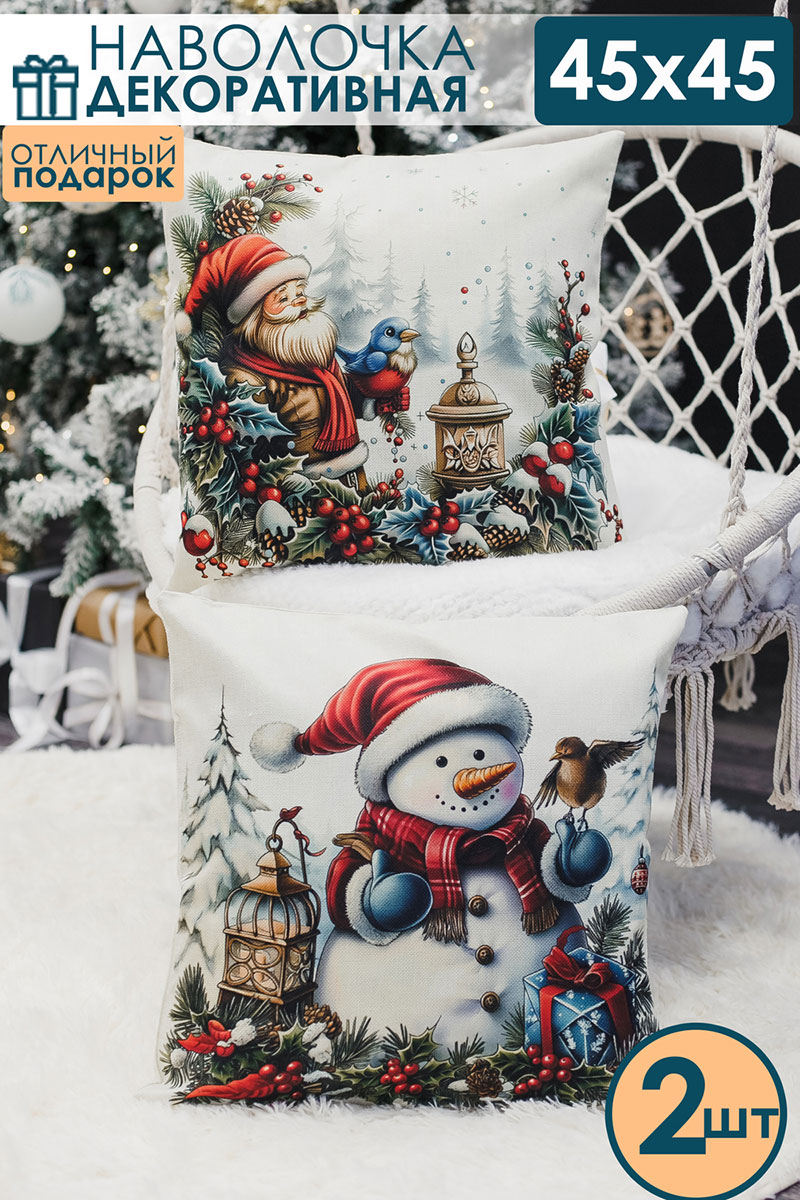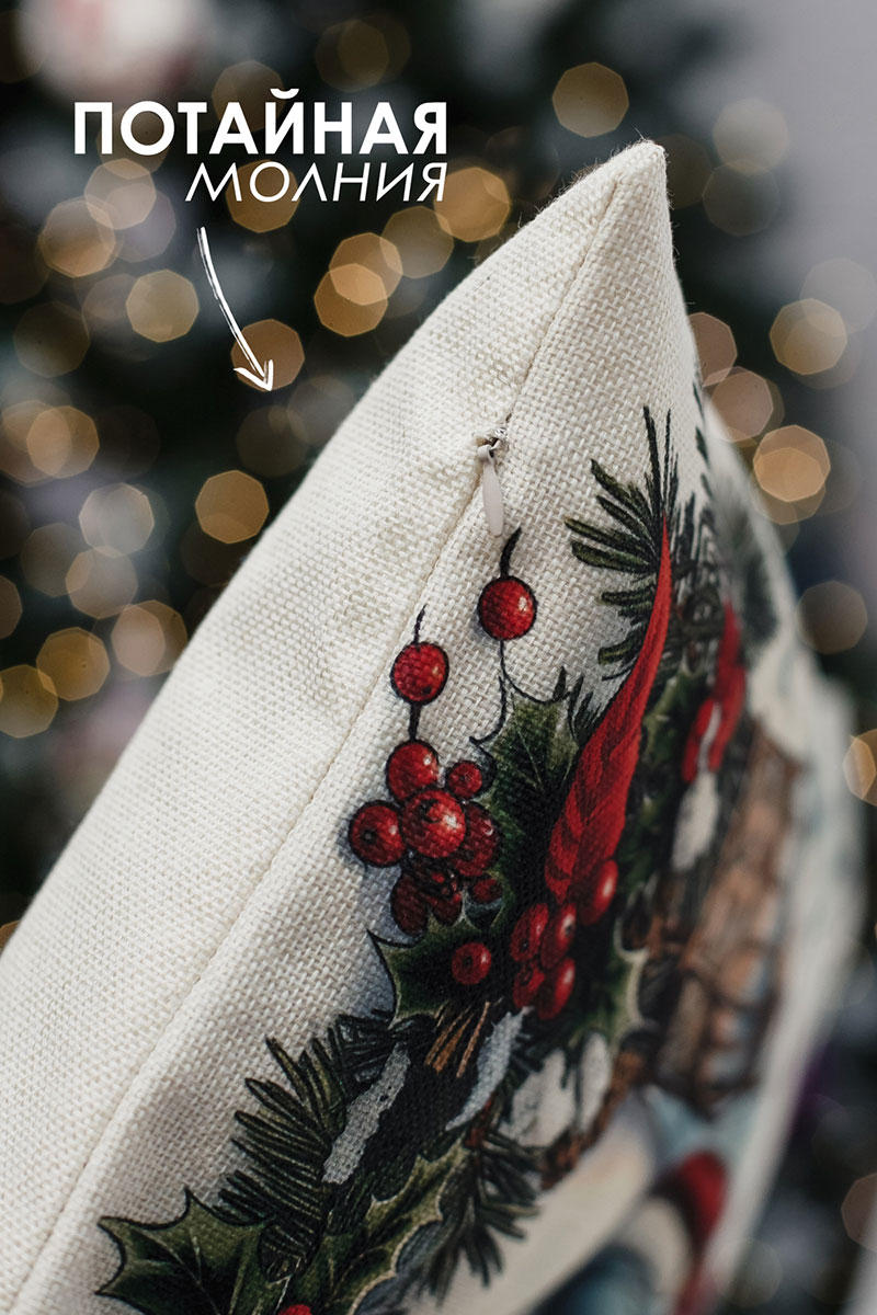 Рогожка отличается износостойкостью, устойчивостью к выцветанию и простотой ухода: наволочка легко стирается, быстро сохнет и сохраняет форму после множества стирок. Потайная молния аккуратно скрыта в шве, не нарушая целостности узора, что позволяет легко снять чехол для стирки, сохраняя аккуратный вид. Изделие мало мнётся и долговечно, идеально подходит для повседневного использования в спальне, гостиной или детской. Это стильный и практичный подарок. Сочетание выразительного рисунка с дедом морозом и снеговиком с нежной гладкой тканью делает наволочку универсальным элементом для любого интерьера, добавляя уют и современность. Её универсальный размер подходит для дивана, кресла, спальни или гостиной.