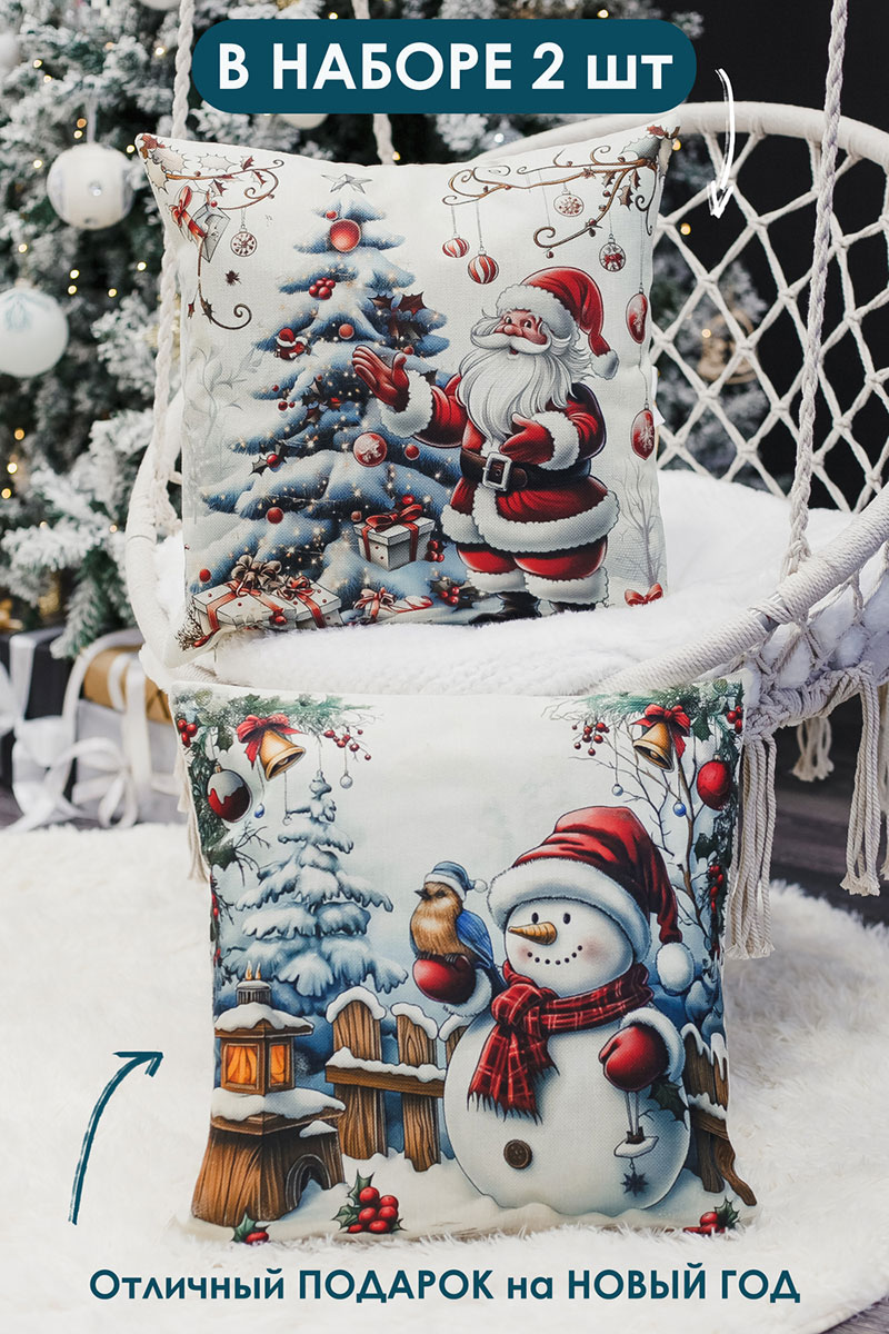 Наволочка-чехол декоративная на молнии "Дед, елка, снеговик" 2 шт.