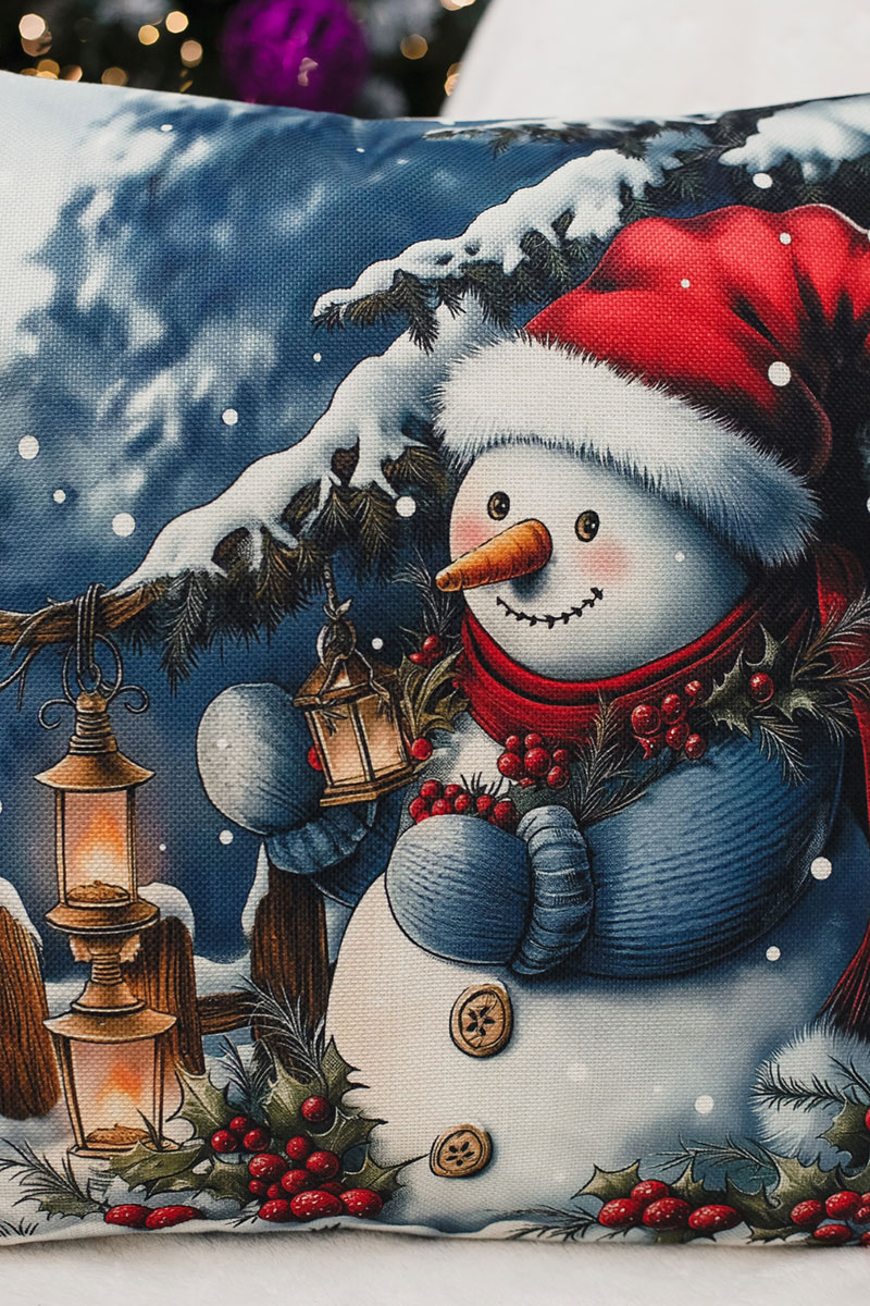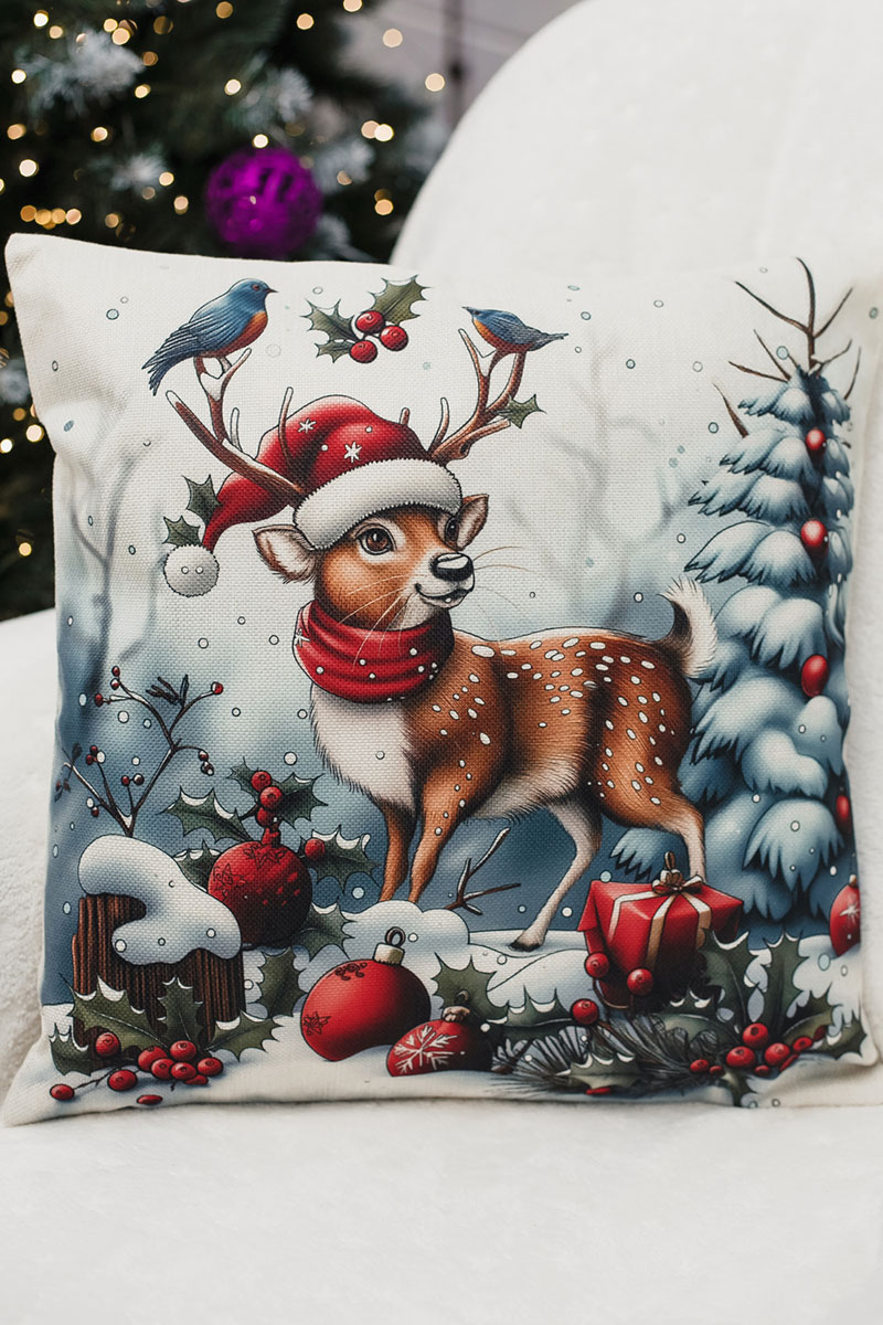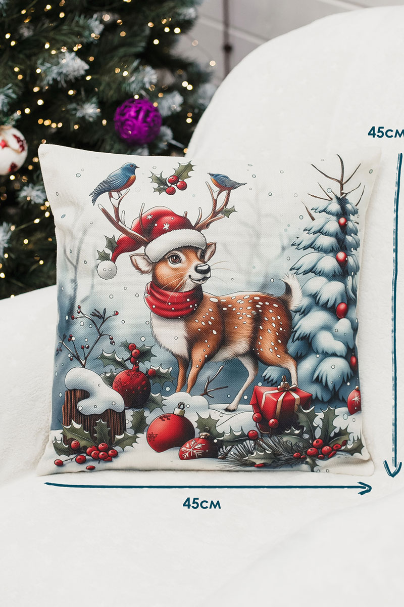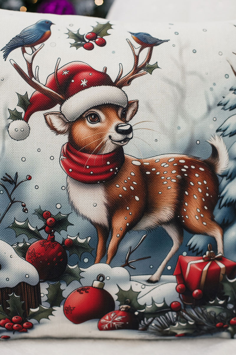 Наволочка-чехол декоративная на молнии "Олень, шапка, снеговик" 2 шт.