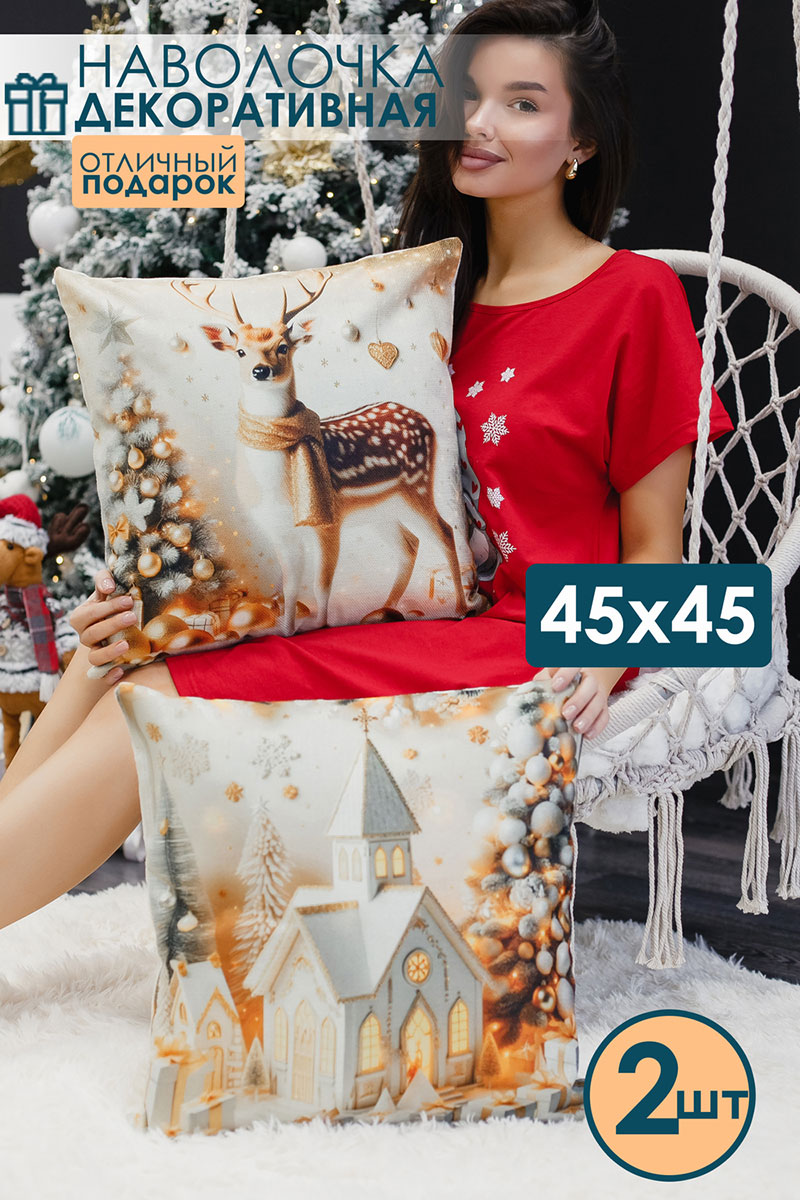 Представляем Вашему вниманию декоративные наволочки с молнией из качественной рогожки. Лицевая сторона наволочки украшена выразительным новогодним рисунком, который добавляет интерьеру глубину и динамику. Обратная сторона однотонная, что облегчает её сочетание с другими элементами декора. Ткань мягкая, гладкая и приятная на ощупь, обеспечивает тактильный комфорт и выглядит элегантно.