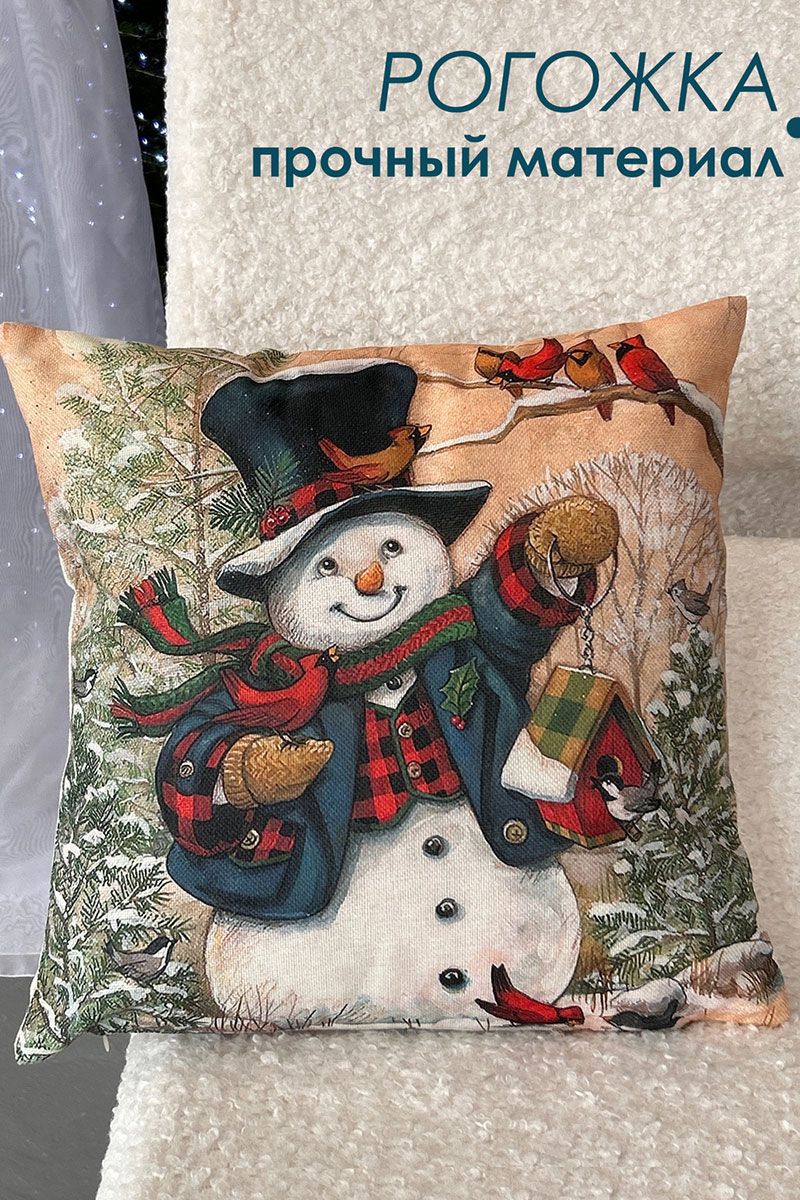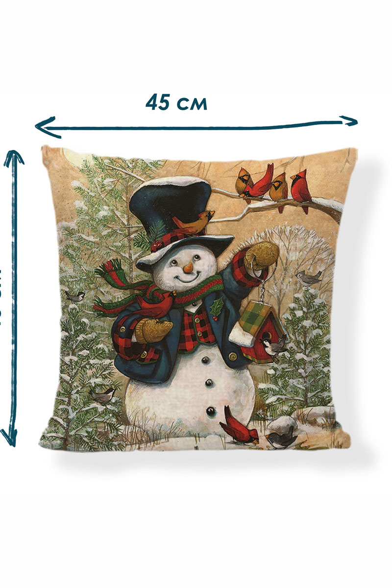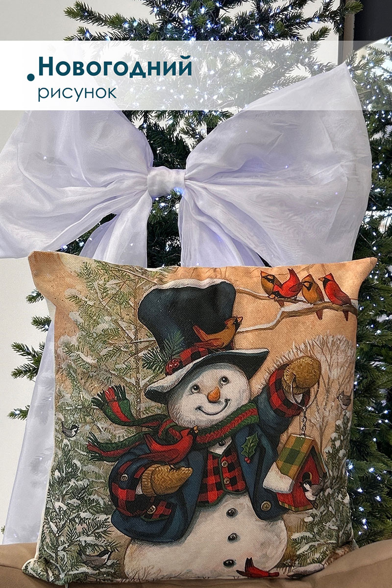 Представляем Вашему вниманию декоративную наволочку из качественного полотна рогожка. Лицевая сторона украшена ярким новогодним рисунком, придающим интерьеру глубину и динамику. Обратная сторона однотонная, что делает наволочку универсальной и легкой в сочетании с другими элементами декора.