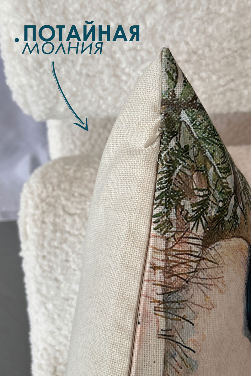 Потайная молния аккуратно спрятана в шве, не нарушая целостности узора. Это позволяет быстро снять чехол для стирки, сохраняя аккуратный внешний вид. Наволочка долговечна и подходит для повседневного использования в спальне, гостиной или детской. Она станет стильным и практичным подарком на Новый год.