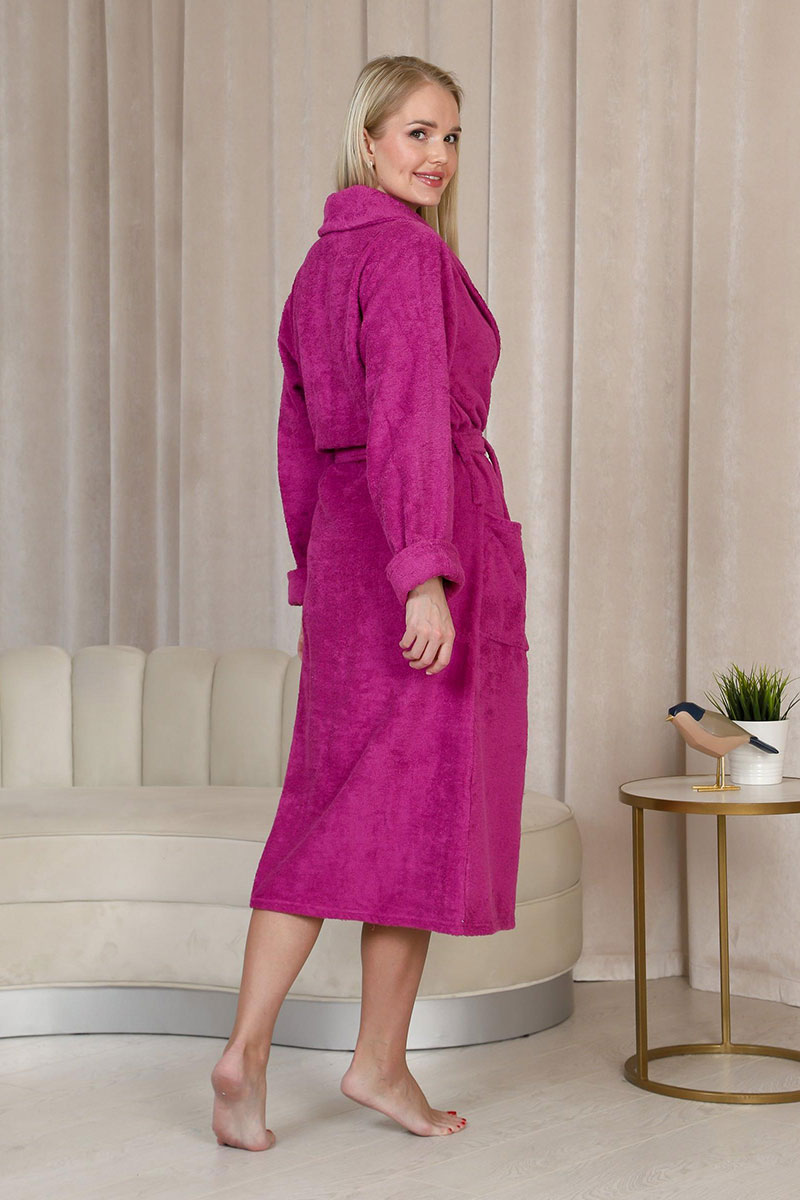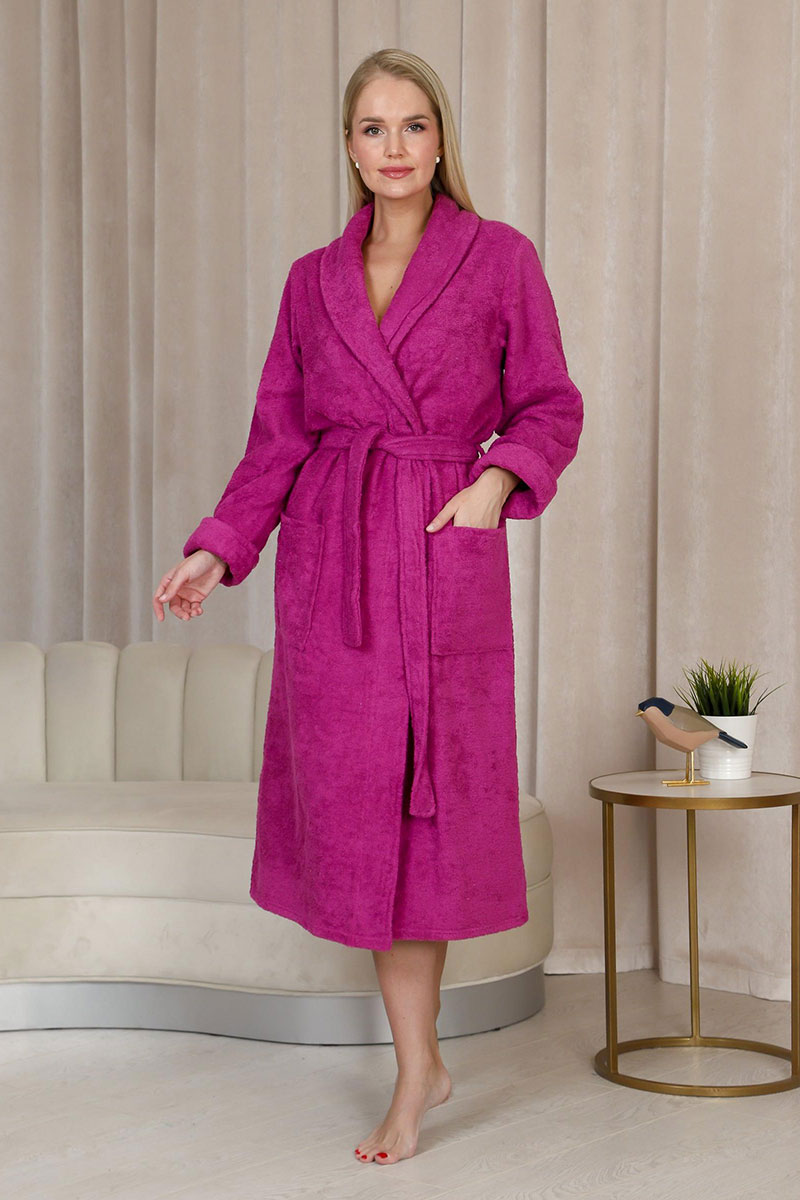 Халат женский шаль махровый удлиненный "Женская элегия" (последний размер) фуксия 50
