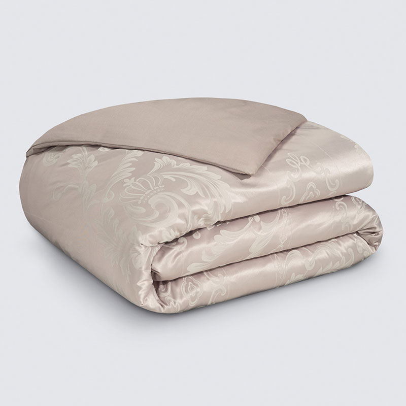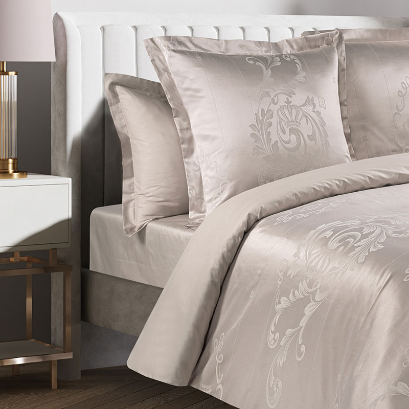 Особенности: пододеяльник с молнией, наволочки с ушками. На верхней части пододеяльника и наволочек 70х70 блестящий узор выполнен шелковой нитью из вискозы.