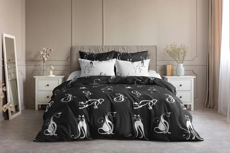 Перед первым использованием рекомендуется стирка. Перед стиркой пододеяльник и наволочки необходимо вывернуть наизнанку, простыню поместить внутрь пододеяльника. Стирать руками или в стиральной машине при температуре 30 градусов в режиме бережной стирки мягкими моющими средствами, не содержащими отбеливателей. Гладить с изнанки при средней температуре.
