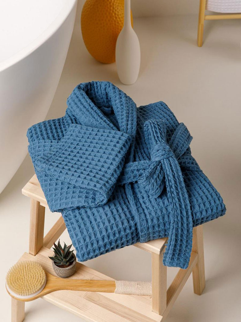 Представляем Вашему вниманию вафельный халат, изготовлен из натурального 100% хлопка. Приятная к телу, плотная и прочная хлопковая ткань быстро впитывает влагу, при этом пропускает воздух, обеспечивая коже дыхание после душа, не вызывая раздражений и аллергии и не оставляя на себе волосков. Халат-полотенце долго сохраняет тепло, позволяет телу дышать, не вызывает аллергии.