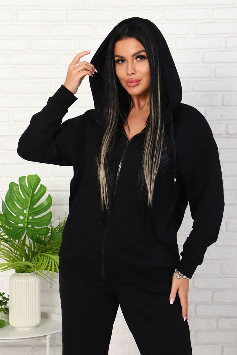 Костюм двойка женский 907-7 футер 2-х нитка с лайкрой (последний размер) черный 54,58
