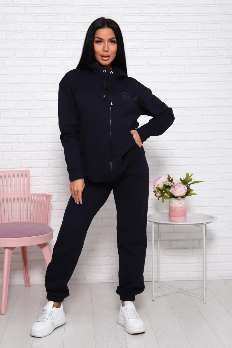 Костюм двойка женский 01024 футер 2-х нитка с начесом (последний размер) темно-синий 58