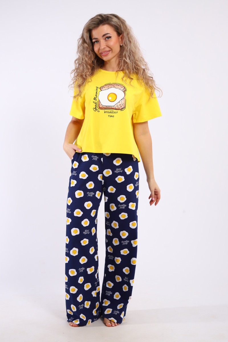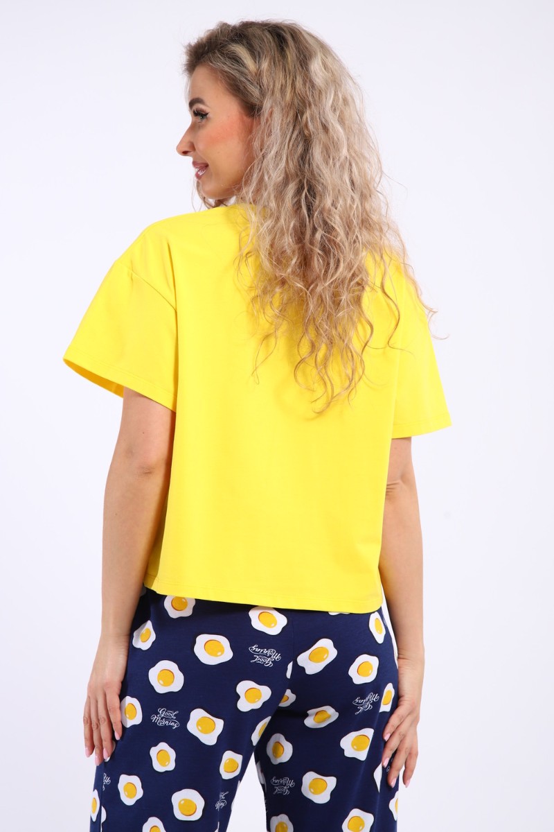 Костюм двойка женский КД-00-007 кулирка (р-ры: 84-112) желтый яичница
