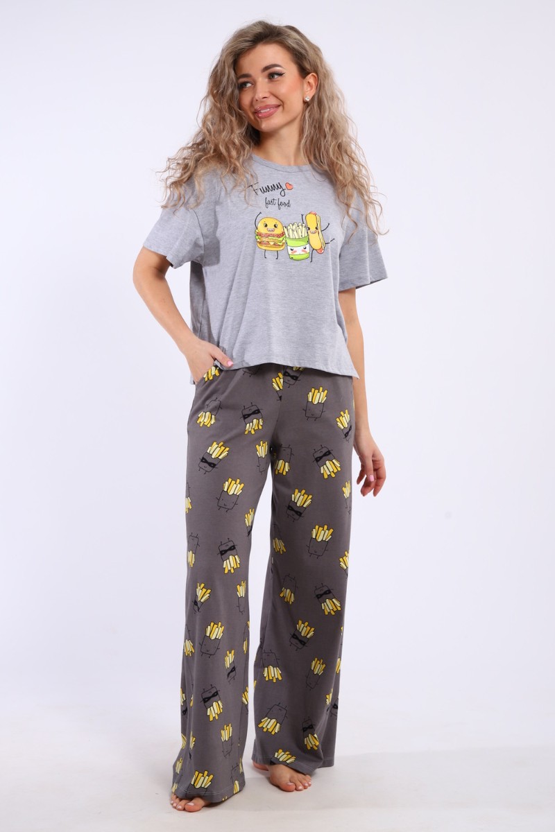 Представляем Вашему вниманию красивый женский костюм двойка от ивановского производителя состоит из футболки и брюк в стиле палаццо. Этот стильный домашний комплект выполнен из мягкого и приятного на ощупь трикотажного материала из 100% хлопка. Он идеально подойдет для осеннего и весеннего сезонов. Эта женская пижама с брюками кюлотами сочетает женственность и удобство. Отличный выбор для повседневного использования дома и сна. Брюки клеш придают образу особый шарм и делают костюм популярным среди молодежи и подростков. Благодаря широким брюкам, пижама выглядит модно и трендово. Этот ночной комплект предлагается в нескольких размерах, включая большие размеры, и подходит стройным девушкам и женщинам, а также полным дамам plus size. Благодаря свободному крою и удобным брюкам трубам, он также идеально подойдет для беременных женщин, давая им свободу движения и комфорт в домашних условиях. Хлопковая пижама изготовлена из качественного турецкого трикотажа (кулирка), который приятен к телу и обеспечивает комфорт во время ночного отдыха. Она подойдет для любого времени года, особенно на осень, весну, зиму. Этот удобный и стильный комплект пижамы с брюками станет отличным выбором для роддома, повседневного отдыха дома или даже для новогодней фотосессии и пижамной вечеринки. Сочетание комфорта, красоты и функциональности делает эту пижаму невероятно привлекательной. Домашний костюм, пижама - это прекрасный подарок себе, маме, сестре, бабушке, жене на новый год, день рождения или без повода.