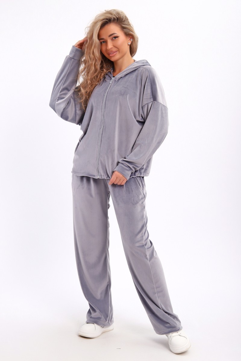 Костюм двойка женский №061 велюр (р-ры: 44-58) светло-серый