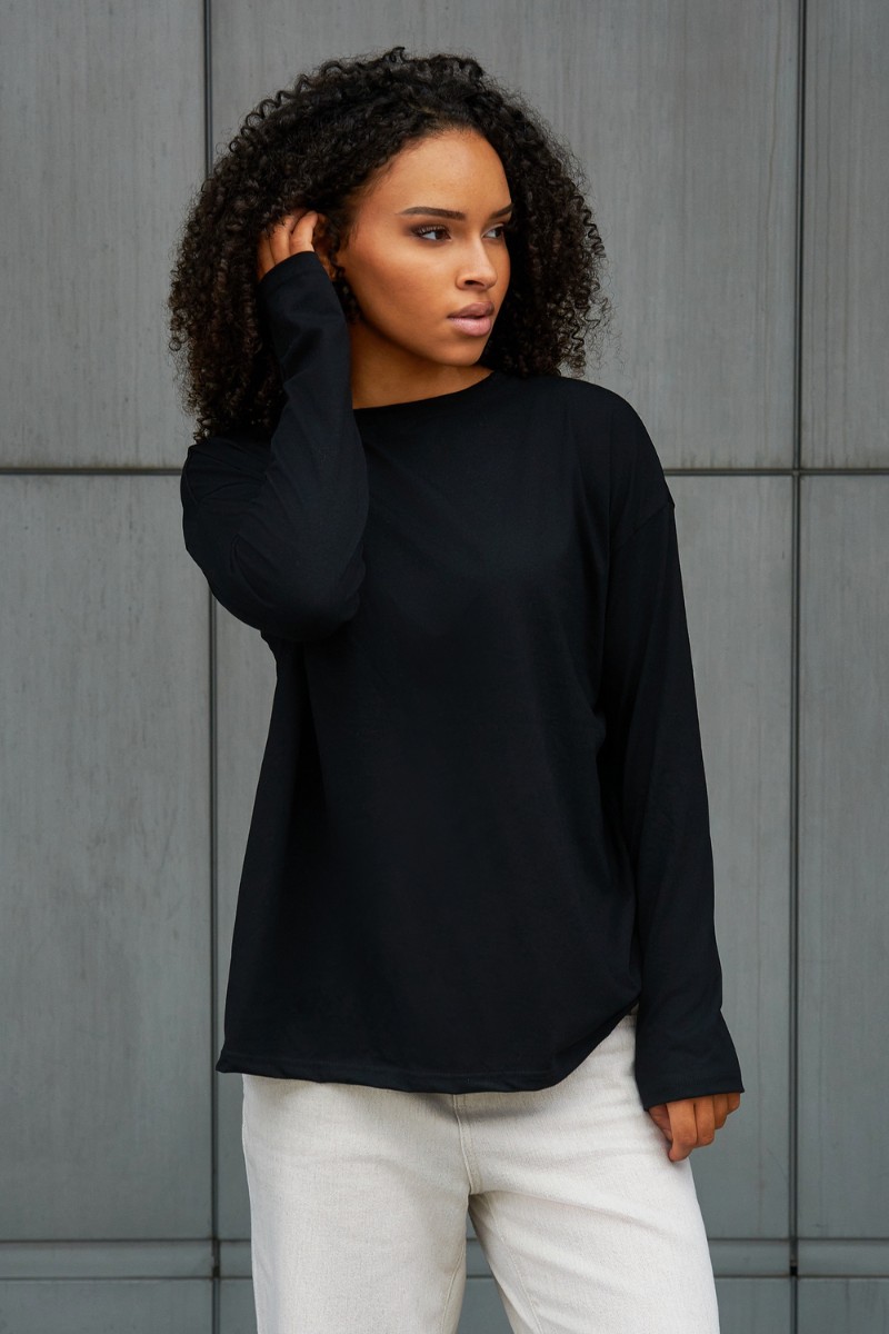 Лонгслив женский №057098 "Лонг" кулирка пенье компакт (р-ры: 44-66) черный