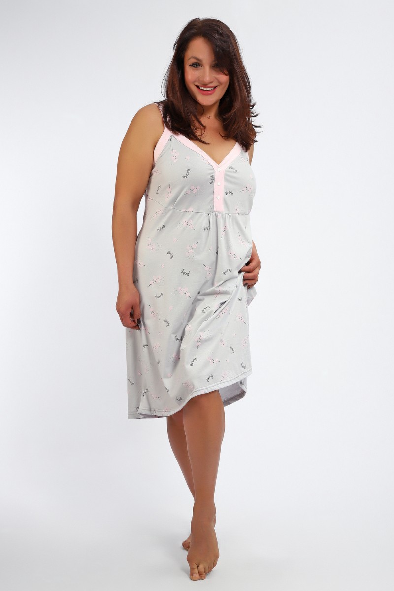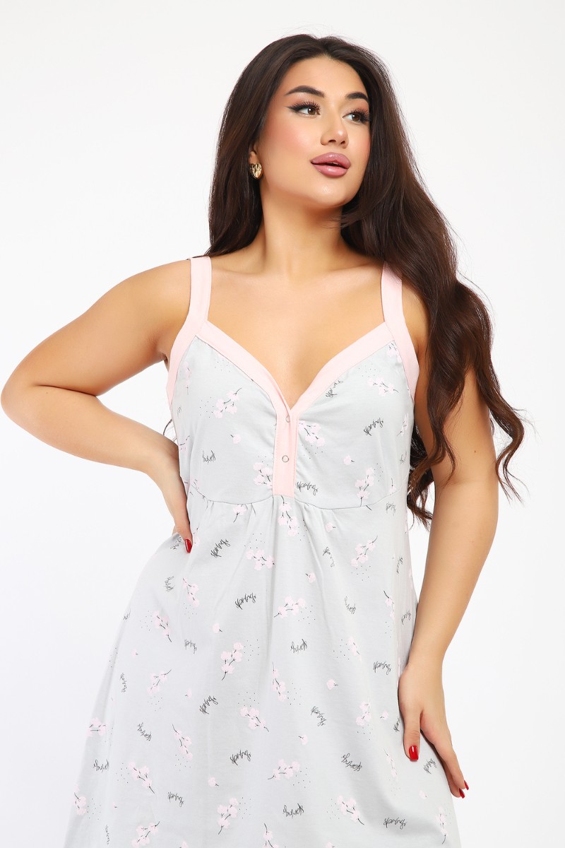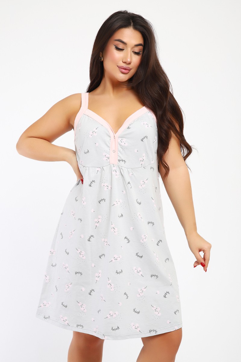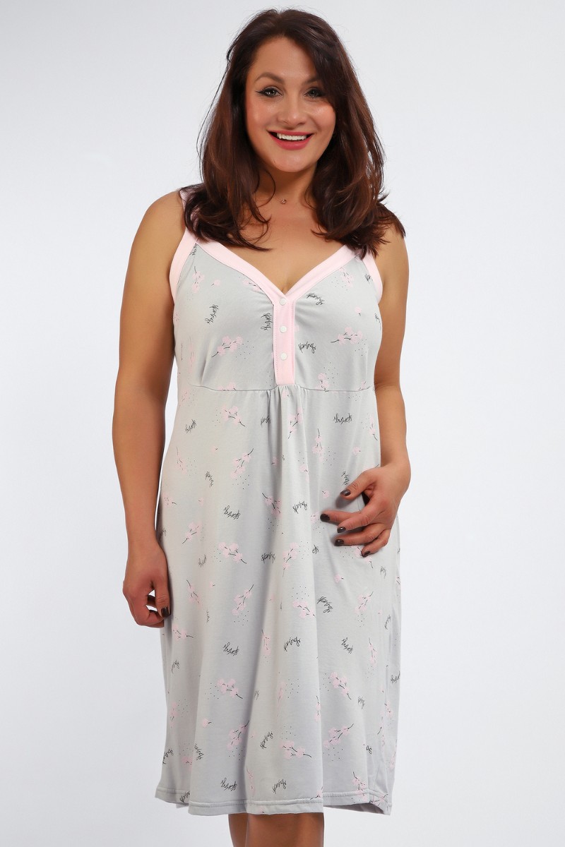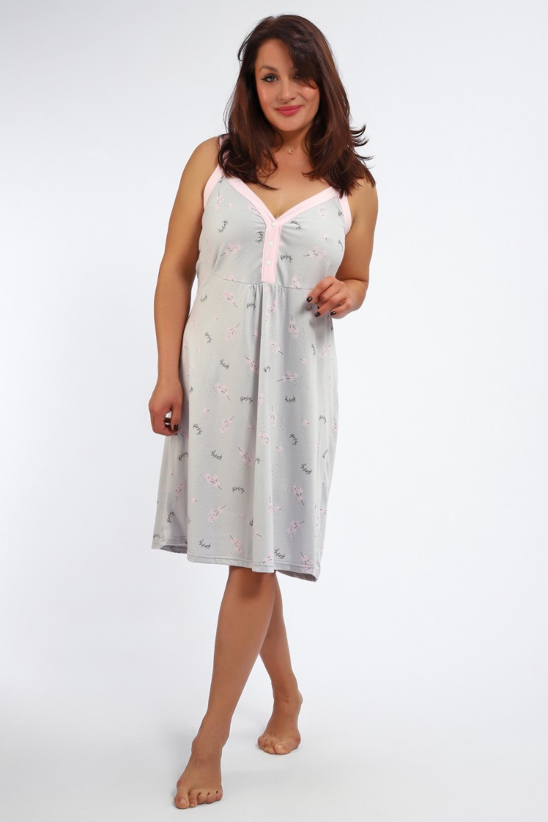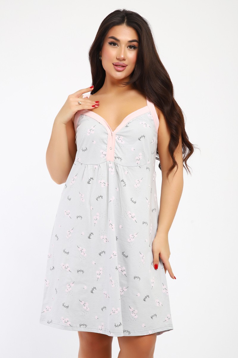 Представляем Вашему вниманию сорочку женскую без рукава на бретелях. Данная модель выполнена из трикотажного полотна кулирка (хлопок 100%). Полочка отрезная с кнопками. Горловина обработана широкой окантовкой. Отличная модель для сна и кормления.